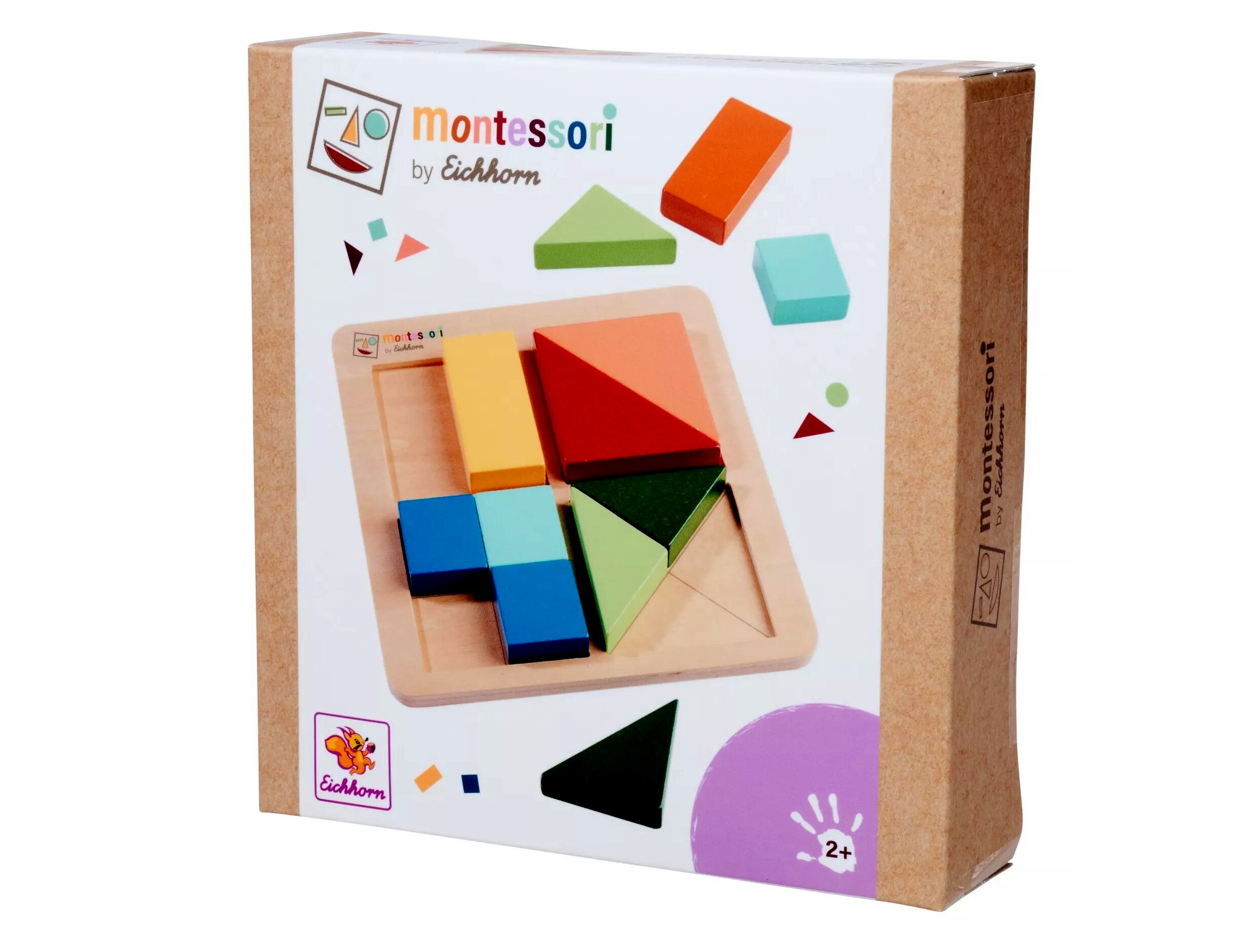 Az Eichhorn Montessori fa oktató játék egy lenyűgöző bevezetést nyújt a formák világába a fiatalabb korosztály számára. A 13 darabos készlet különböző formákból áll, melyeket a gyerekek egyszerűen illeszthetnek a megfelelő helyre a játéktáblán. A játék táblamérete 18x18 cm, ami tökéletesen illik a kisebb kezekhez.