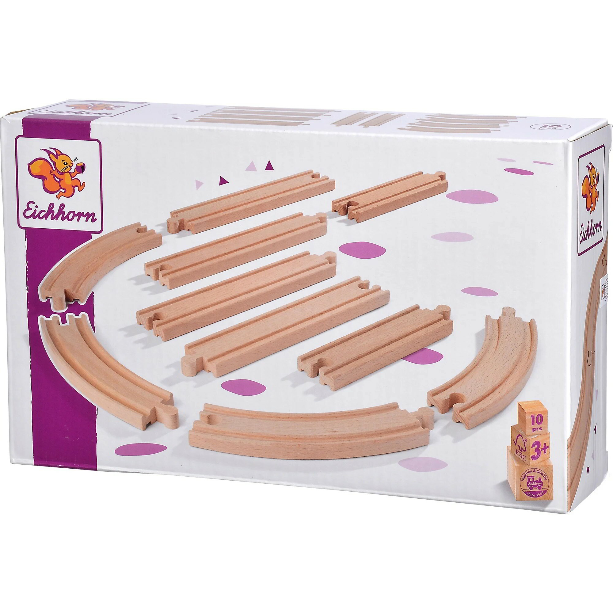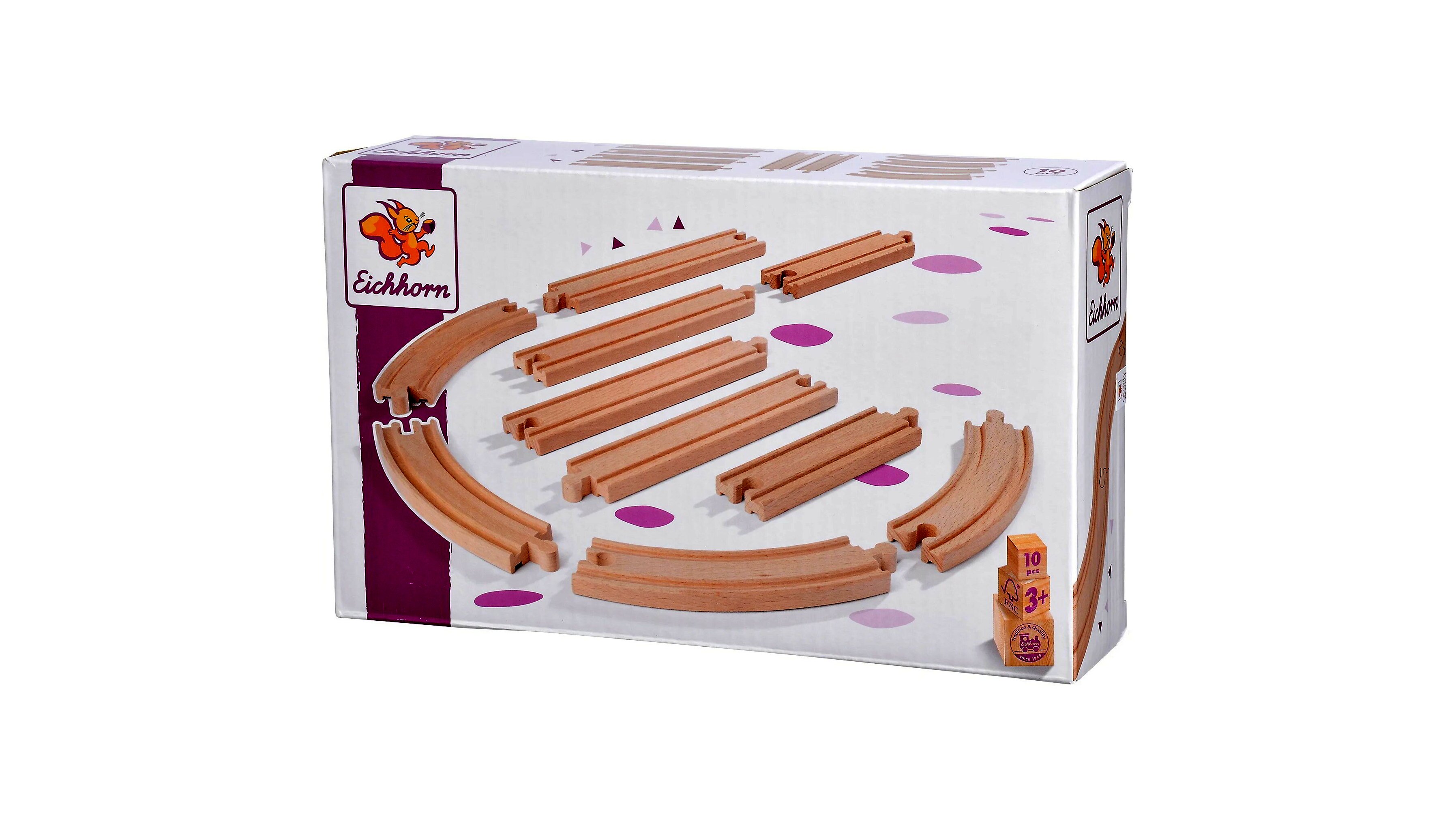 Ezzel a fantasztikus sínkészlettel bővítheted Eichhorn-fa vonatod pályáját akár 10 új elemmel. A készlet tartalma: 4 nagy íves sín, 4 hosszú egyenes sín és 2 rövid egyenes sín. Mindegyik elem teljes mértékben FSC-tanúsítvánnyal rendelkező fából készült, így a szórakozás mellett a környezetvédelemre is figyelsz.