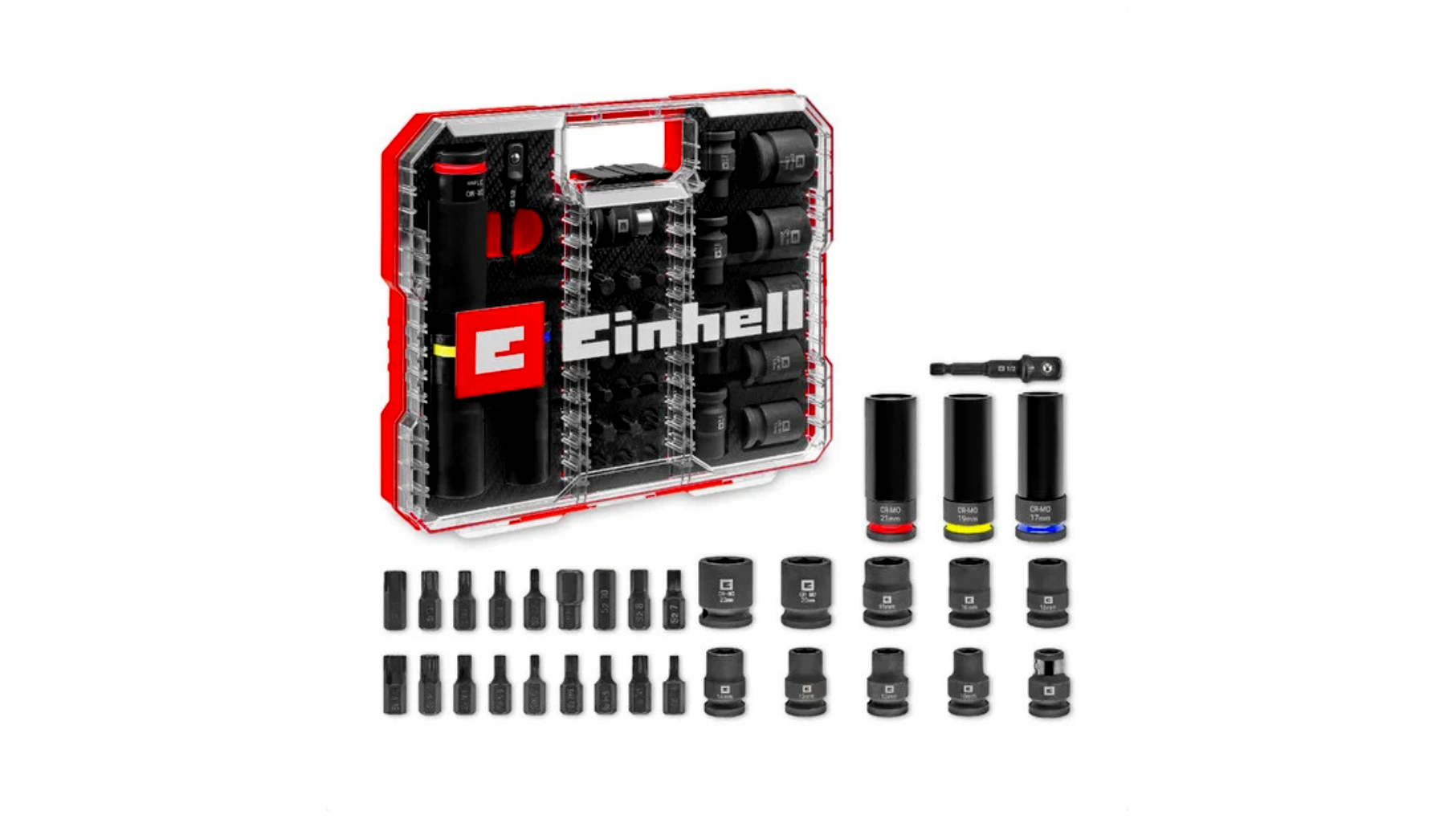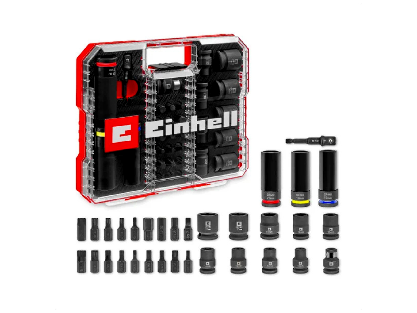 • Kompatibilis rendszer: minden 1/2"-os négyszög meghajtású racsnival és ütvecsavarozóval használható, a mellékelt adapterek pedig még nagyobb rugalmasságot kínálnak.
