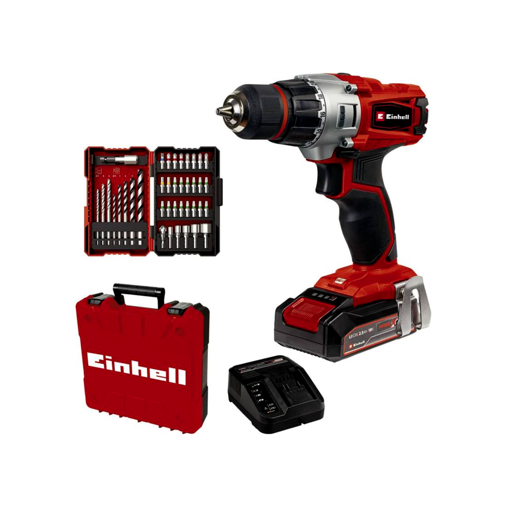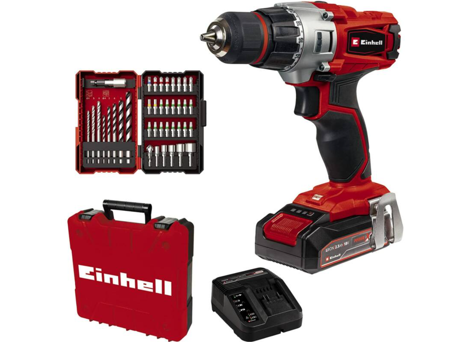 Az Einhell akkus fúrócsavarozó TE-CD 18/2 Li +39 (1x2,5 Ah) a Power X-Change család tagja, és vezeték nélküli szabadságot kínál otthon, műhelyben és garázsban. Akár erőteljes csavarozásról, akár gyors fúrásról van szó, a 2-fokozatú akkus fúró-csavarozónak van egy kulcs nélküli tokmánya Quick-Stop funkcióval, és az automatikus orsózárnak köszönhetően gyors szerszámcserét tesz lehetővé. A nyomaték csúszó tengelykapcsoló érzékeny munkát tesz lehetővé, az ergonomikus puha markolat kényelmessé teszi a hosszabb munkákat is. A munkaterületet LED világítás világítja meg. A szállítási terjedelem tartalmazza az övcsipeszt, 1 db 2,5 Ah-s PXC akkumulátort gyorstöltővel és a kiterjedt, 39 részből álló fúró- és fúrókészletet, amely a praktikus E-Box Basic tokot is tartalmazza.