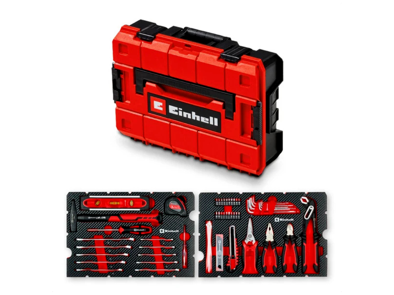 Az Einhell német gyártóként évtizedek óta fejleszt megbízható, ár-érték arányban kiemelkedő gépeket és szerszámokat barkácsolók és szakemberek számára. Az E-Case rendszerkofferek célja, hogy a szerszámtárolást profi szintre emeljék: moduláris, egymásra építhető, terhelhető tárolórendszert kínálnak, amely a műhelyben és útközben is áttekinthető, rendezett munkakörnyezetet biztosít. A TÜV-GS minősítések, a króm-vanádium acél szerszámok és az S2 acél bitek mind a tartós, hosszú távú használatot szolgálják.