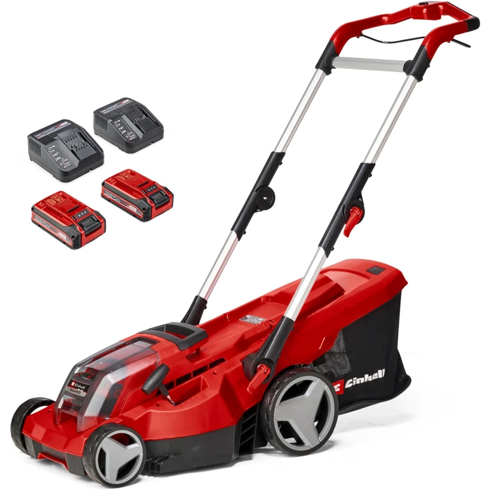 Az Einhell RASARRO 36/36 akkumulátoros fűnyíróval gyerekjáték a gyep ápolása. Mivel a kiváló minőségű Power X-Change akkumulátorok mindig nagy teljesítményt biztosítanak, örökre elfelejtheti a hosszabbítókábelekkel járó fejfájást! Az akkukat az Einhell PXC-termékcsalád valamennyi készülékéhez használhatja. A két darab nagy teljesítményű 3,0 Ah lítium-ion akkumulátornak köszönhetően a gyep ápolása mostantól gyerekjáték! A készüléket max. 400 négyzetméter nagyságú füves területek ápolására tervezték. A 25 – 75 milliméter tartományban állítható vágásmagasságnak és a 36 centiméteres vágásszélességnek köszönhetően ezzel a fűnyíróval könnyen formába hozhatja a gyepet! A beépített lombseprűnek köszönhetően a szegélyekhez közel is lenyírhatja a füvet. Az ergonomikus kialakítású nyél és markolat könnyű használatot tesz lehetővé. A felhasználó mindig a saját és igényeinek megfelelően állíthatja be a nyél magasságát. A fűnyírót erős és könnyű alumíniumnyéllel szerelték fel. Az integrált fogantyúnál felemelve könnyen arrébb viheti vagy szállíthatja a készüléket. A nyél összecsukható, így a fűnyíró helytakarékosan tárolható. A 45 liter űrtartalmú fűgyűjtő kosarat telítettségjelzővel, magát a fűnyírót pedig füvet kímélő, nagy felületű kerekekkel szerelték fel. A készüléket akkumulátorokkal és két gyorstöltővel vásárolhatja meg.