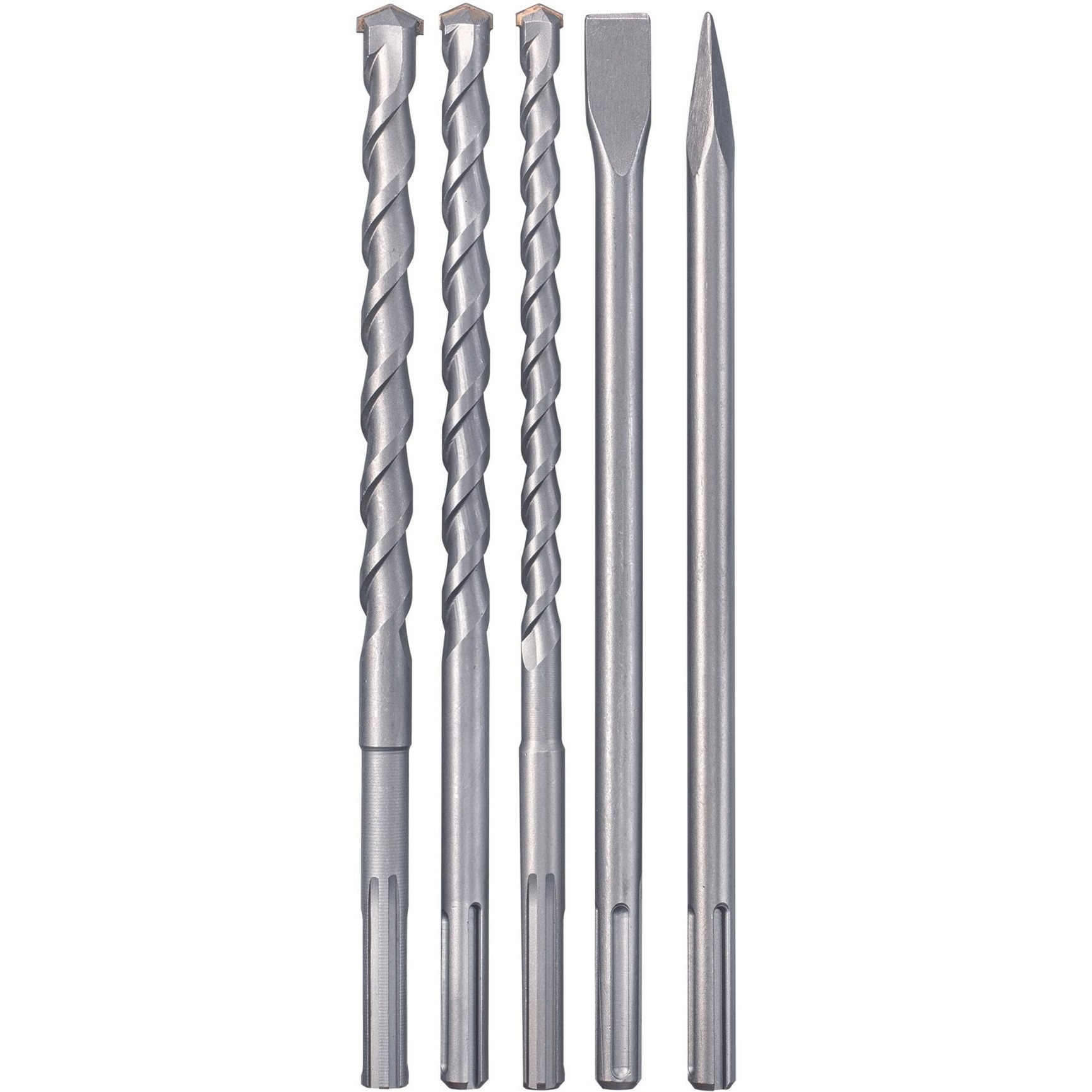 Az Einhell 5 darabos SDS Max fúró- és vésőkészlete 49194005 ideális kezdő készlet a fúrókalapácshoz, amely minden fúrási és felújítási munkához alkalmas. A készlet három fúrókalapácsot és két vésőt tartalmaz a leggyakoribb méretekben. Robusztus CR acélból készülnek, HRC 50+3 keménységgel, SDS Plus szárral, amely alkalmas minden vésőkalapácshoz és forgókalapácshoz, forgásgátlóval és SDS Max rögzítéssel. Az 5 darabos SDS Plus fúró- és vésőkészletet egy praktikus tároló tokban szállítjuk.