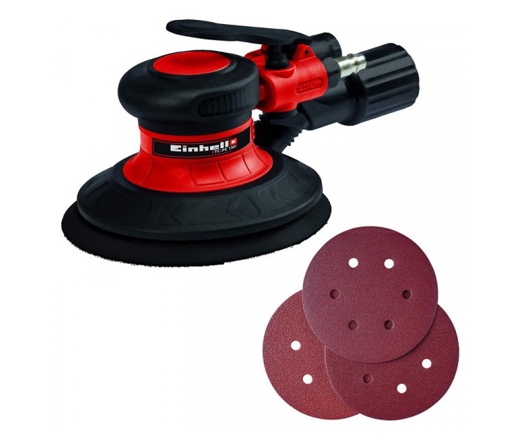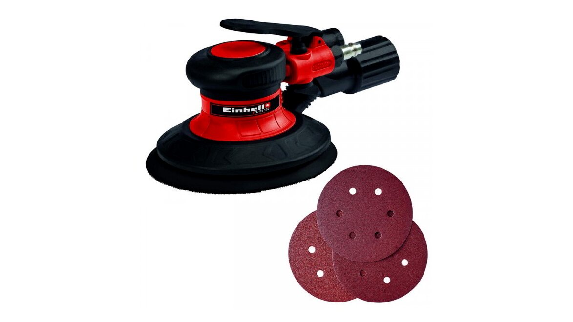 Az Einhell TC-PE 150 sűrített levegős excenter csiszolót használva számtalan feladatot elvégezhet: használja csiszolásra, gravírozásra, simításra, vagy az egyenetlenségek megszüntetésére. Nélkülözhetetlen segítőtárs, akár otthon, akár a műhelyben vagy a garázsban használja. A kompakt kialakítású készülék csiszolótányérjának átmérője 150 mm. Használja fa, vas és műanyagok megmunkálására. A fokozatmentesen állítható kar segítségével egyszerűen és gyorsan beállíthatja a munka elvégzéséhez szükséges ideális sebességet. A csillapított rezgésű fogantyú kényelmes munkavégzést tesz lehetővé. A csiszolópapírt pillanatok alatt kicserélheti a csiszolótányér tépőzáras rögzítésének köszönhetően. Az excenter csiszolóval akkor érheti el a legjobb teljesítményt, ha legalább 9 mm belső keresztmetszetű tömlőt használ. A munkaterület tisztán tartása sem jelenthet gondot: csatlakoztasson egy por- és forgácselszívó készüléket az excenter csiszolóhoz az adapter segítségével, és voilá! Már kész is! A készülékhez 6 db (80/100/120 szemcsefinomságú, mindegyikből 2 db) csiszolópapírt, 1 db levegőcsatlakozó-szelepet és 1 db kulcsot mellékelünk, így a kicsomagolást követően akár azonnal használatba is veheti a készüléket.