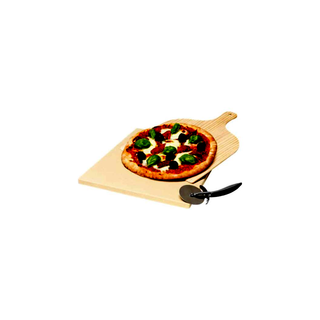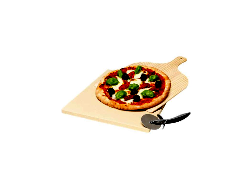 Pizzakészletünk válogatott eszközeivel igazi ínyencségeket készíthet. A pizzakő rendkívül tartós sütőfelületet garantál, míg a fa pizzalapáttal könnyedén átcsúsztatható a pizza a tálalótányérra. A rozsdamentes szeletelővel ideális méretűre darabolható az elkészült étel.