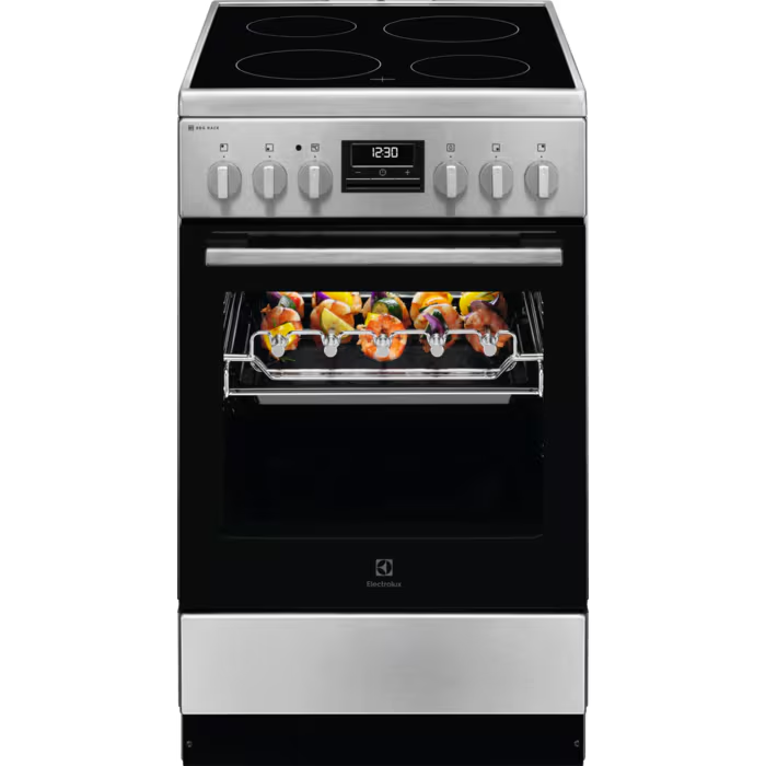 Ez a modern kialakítású, inox felületű, üvegkerámia főzőlappal szerelt elektromos tűzhely ideális választás azoknak, akik megbízható, jól felszerelt és könnyen tisztítható készüléket keresnek a mindennapi főzéshez és sütéshez. Letisztult megjelenésének, kompakt szélességének és gazdag sütőfunkció-választékának köszönhetően kisebb konyhákban is professzionális eredményt tesz lehetővé.