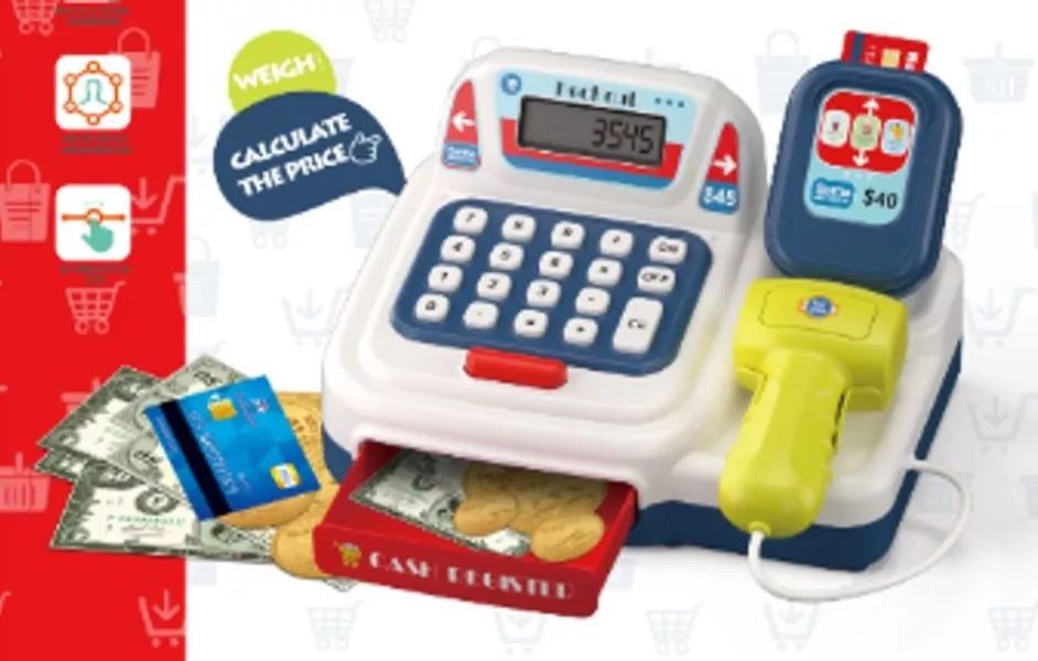 Elektronikus pénztárgép | Vonalkód leolvasóval | Játékpénz és bankkártyák | Részletesen kidolgozott dizájn | Szerepjátékra alkalmas | Fejleszti a képzelőerőt, fantáziát és kreativitást