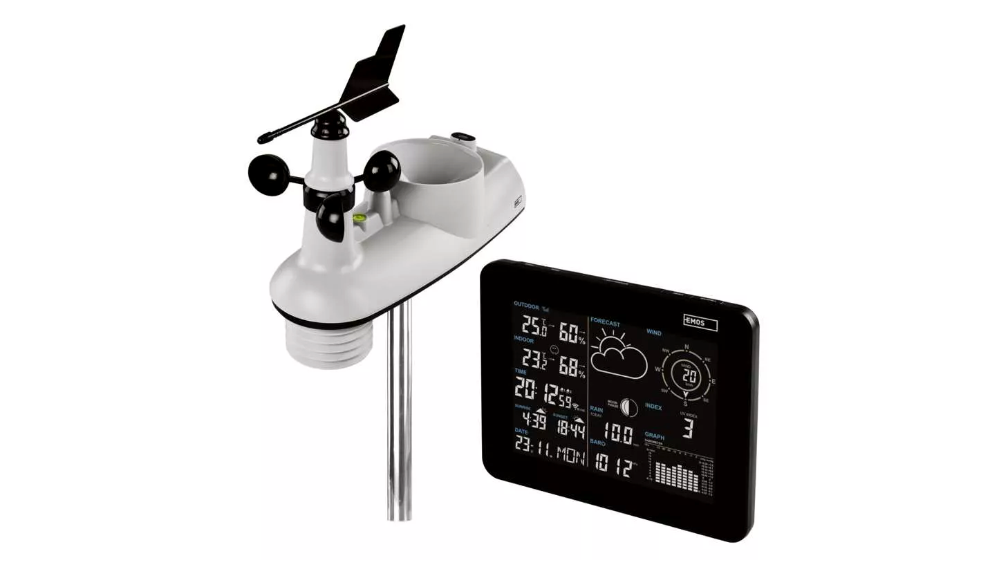 Mit vegyek fel? Szükségem lesz esernyőre? Vagy inkább napszemüveg? Ha Ön is azok közé tartozik, akik szeretik kézben tartani a dolgokat, akkor az okos EMOS vezeték nélküli időjárás állomás kétségtelenül megérdemli a figyelmét. Az igazi ínyenceknek szánt legfejlettebb időjárás-állomás, amelynek nagy előnye, hogy egy intelligens alkalmazáson keresztül kezelhető, csinos fekete dizájnjával már első látásra megragadja a tekinteteket. Sőt, ha meglátja, mire képes! Kezeli az az összes alapvető adatot, például a hőmérséklet, a páratartalom és a nyomás mérését. De ennek az időjárás állomásnak az egyéb funkciói megérdemlik, hogy közelebbről is megnézzük!