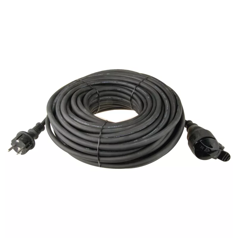 30 m-es 250 V~ gumi SCHUKO hosszabbító kábel, amellyel konnektortól távoli helyeken is megoldható az áramellátás.