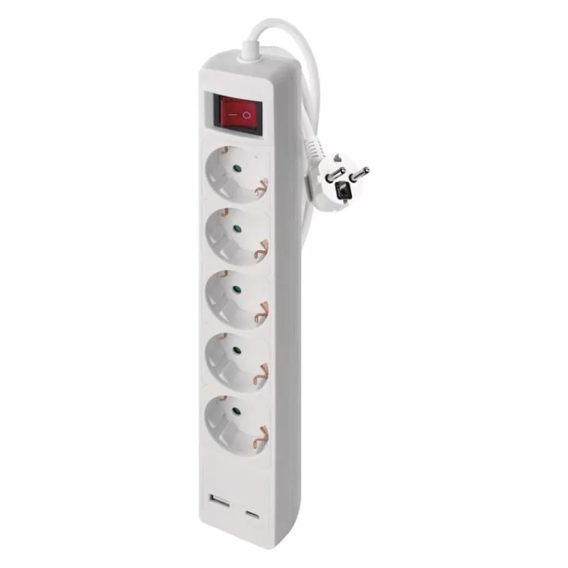 A 3 méteres, 5 aljzatos kapcsolós hosszabbító, USB A + C csatlakozókkal, minden otthon vagy irodai környezet elengedhetetlen tartozéka. Ezzel a megbízható és sokoldalú hosszabbítóval biztos lehetsz benne, hogy minden elektronikád könnyedén csatlakoztatható.