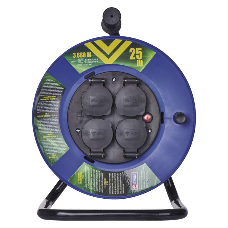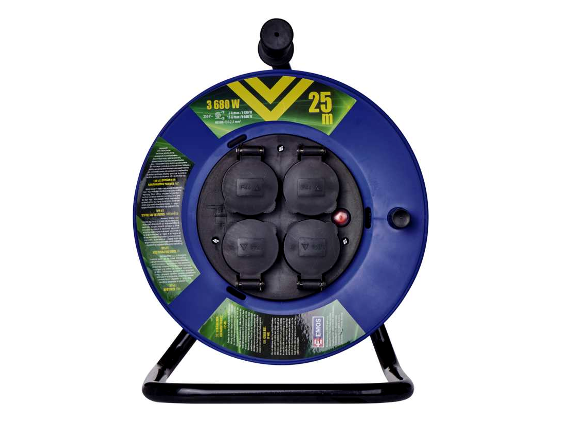 Minőségi gumi SCHUKO hosszabbítókábel-feltekerő dob. 230 V~ feszültségű hálózatokhoz ideális. A dobnak köszönhetően kényelmesen használható.