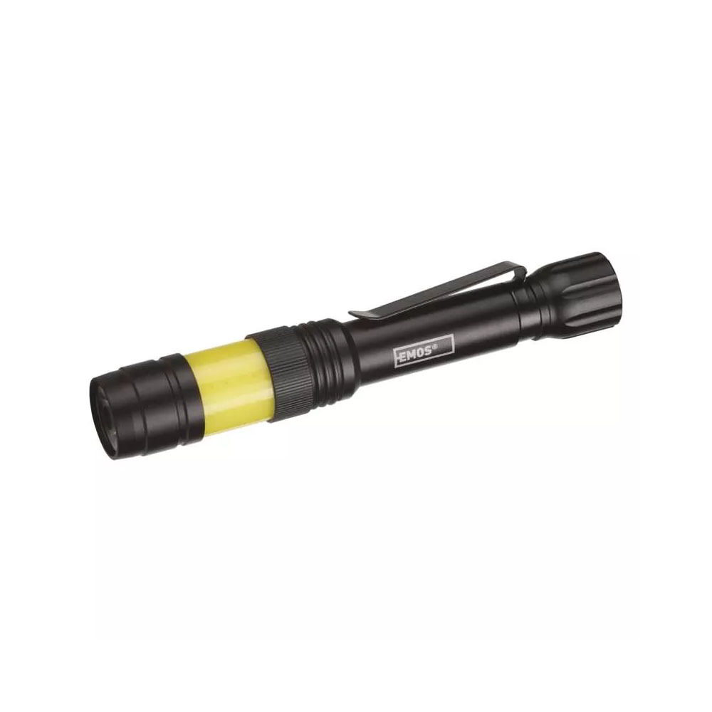 Az Emos P3112 egy kicsi és rendkívül praktikus fényforrás LED-es és COB LED-es fényforrással. A felhasznált LED-eknek köszönhetően fókuszált fénysugarat ad, míg a COB LED-ek egyenletesen szórják a fényt 90° vagy 360° tartományban, akár 270 lumen teljesítménnyel. A modell praktikus rögzítőkapoccsal van ellátva, amely lehetővé teszi a lámpa rögzítését, így bővítve a felhasználási lehetőségeket. A zseblámpa bármilyen helyzetben működhet, a beépített mágneses tartóra szerelve lehetőséget ad a többfunkciós használatra, pl. egy autóban. A sokoldalú zseblámpa bármely háztartásban, műhelyben használható világításként, illetve alternatív fényforrásként áramszünet esetén. A népszerű AA elemekkel működik (nem tartozék), és akár 15 órán át is üzemelhet. Egy kézzel működtethető taktikai kapcsolóval rendelkezik, amely azonnali hozzáférést biztosít öt világítási módhoz. A masszív ház alumíniumból készült.