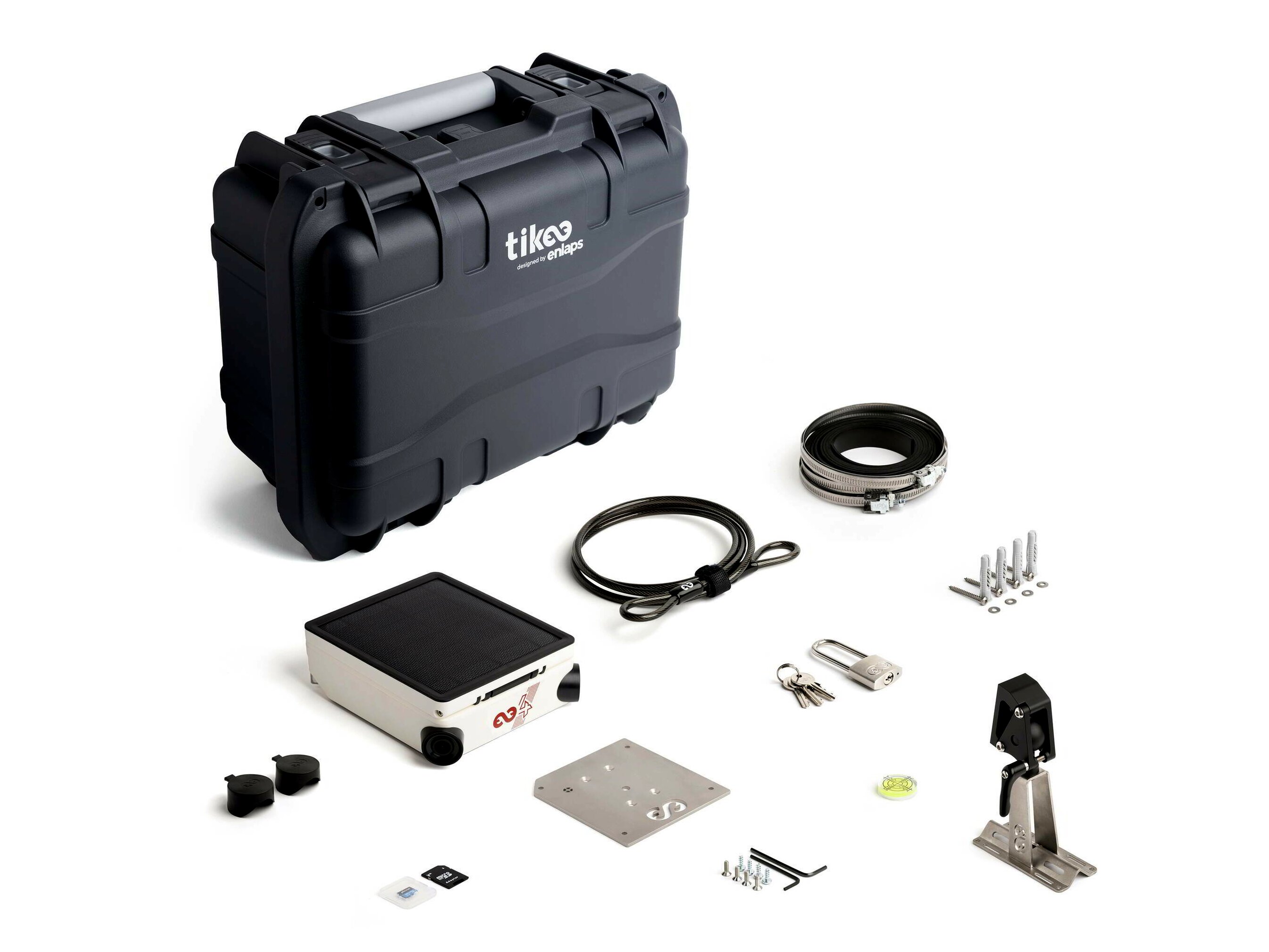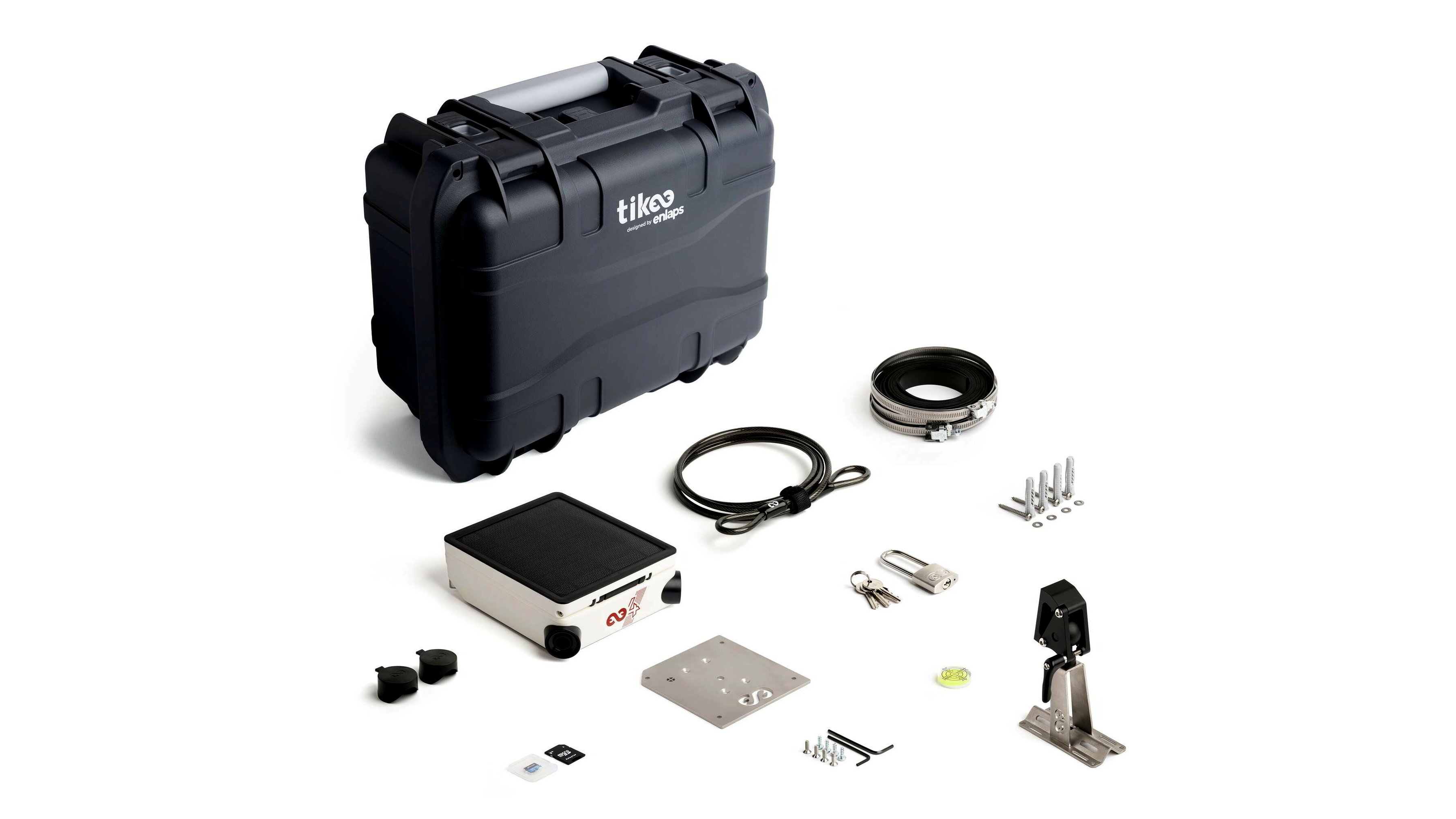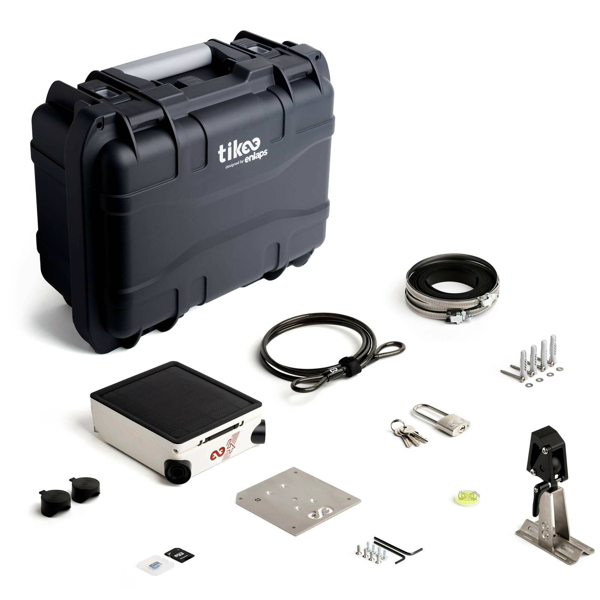 A Tikee 4 kültéri time-lapse kamera csomag mindent tartalmaz, amire szükséged lehet egy hosszú távú projekt dokumentálásához. Ebben a csomagban a Tikee 4 kamera mellé jár egy kemény tok, kábellakat, rozsdamentes acél tartókar, megerősített rögzítő lemez, rögzítőkészlet, objektívvédő sapka, valamint egy 256 GB-os microSD kártya is, hogy a felvételeid biztonságban legyenek és könnyedén hordozhasd mindezt.