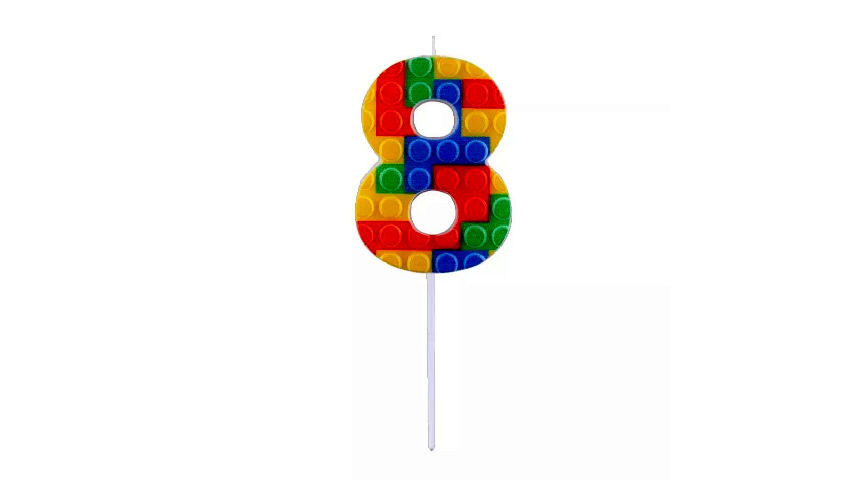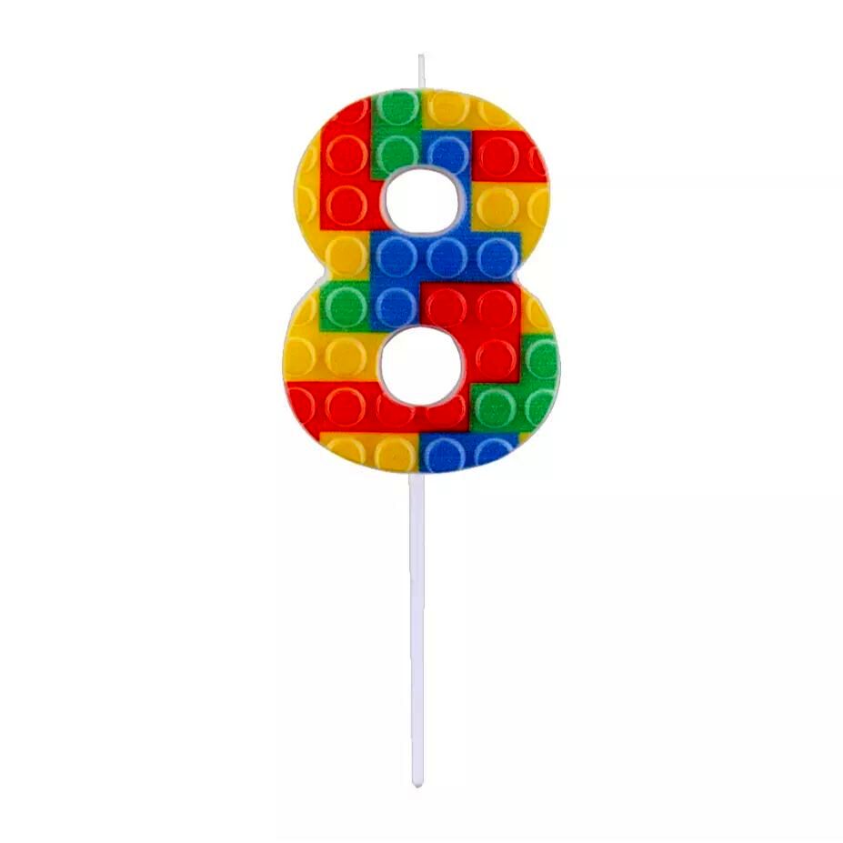 - Színes építőkocka minta: A gyertya színpompás, vidám mintája minden születésnapi ünnepséget feldob.