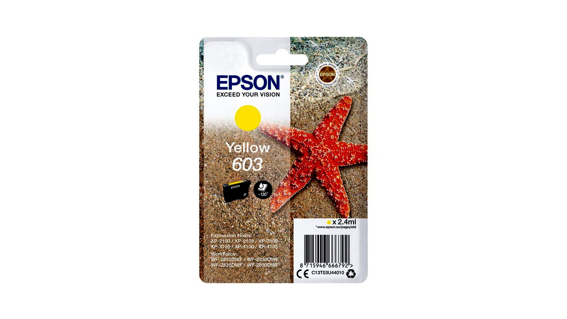 Élvezze a megbízható, élénk színű és tiszta nyomatokat minimális beruházással az Epson négyszínes, 603-as tintáival. A beivódó színes és fekete pigmenttinták kombinációjának köszönhetően ez a tintakészlet hangsúlyos és színes nyomatokat állít elő.Csökkentse a nyomtatási költségeket az XL méretű tintákkal