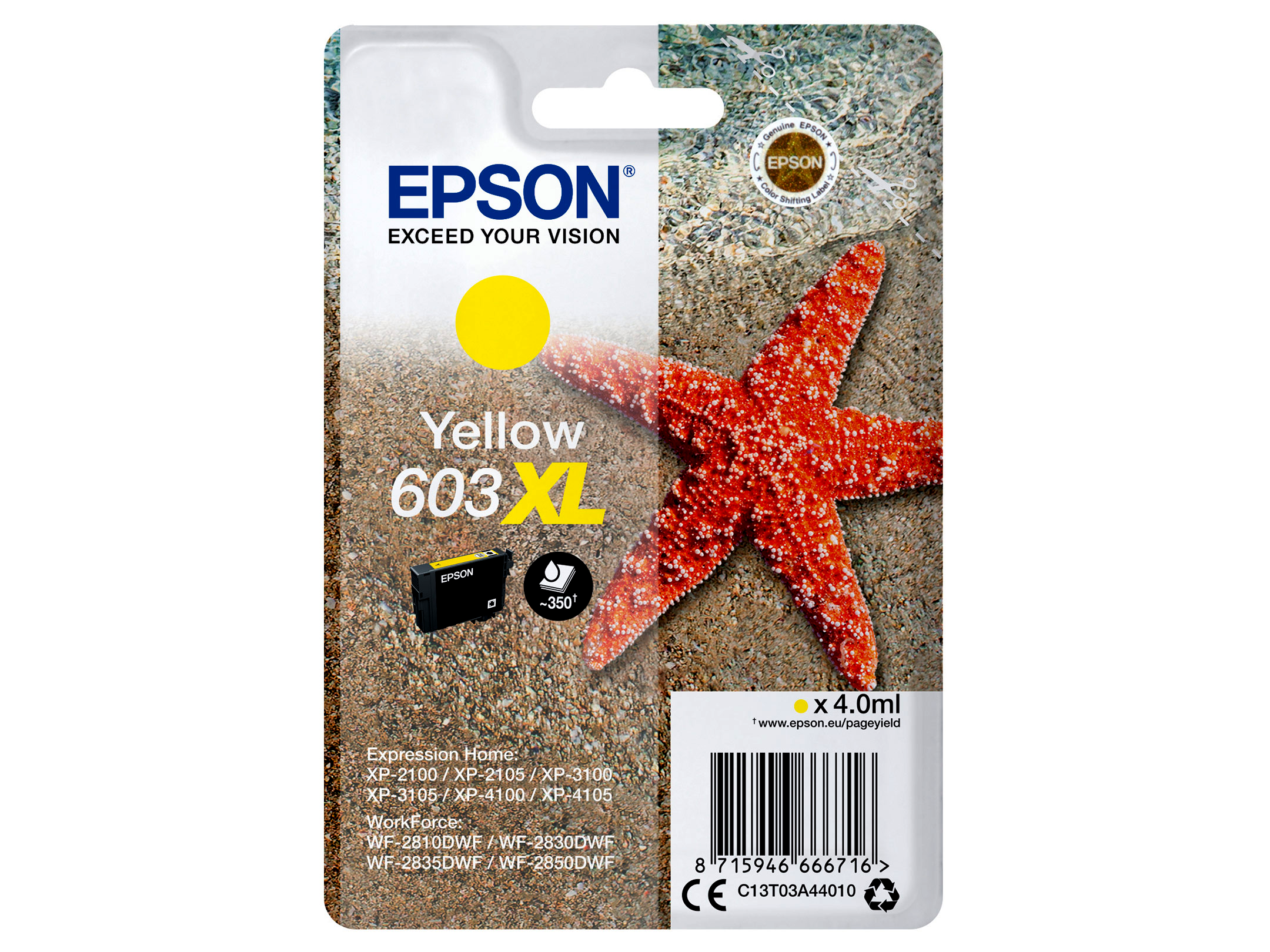Alacsony költségű, mégis megbízható nyomtatási megoldást biztosít ez a megfizethető négyszínes tintakészlet, amely az Epson átfogó kutatásainak és fejlesztésének előnyeivel rendelkezik. A 603-as tintát az Epson nyomtatóira optimalizálták a jól látható és élénk nyomatok érdekében. Számos dokumentumot képes előállítani éles, jól látható szöveggel és grafikával.Az Epson nyomtatók használatára optimalizálva