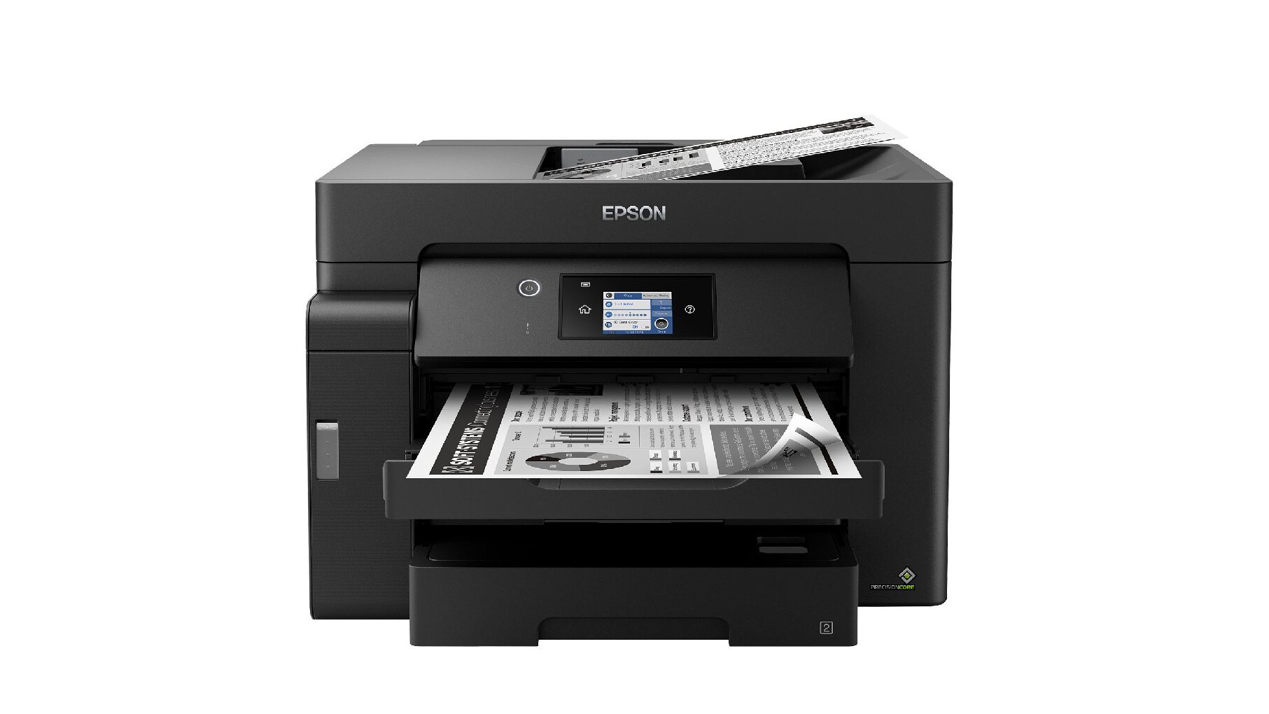 Ez a funkciógazdag monokróm EcoTank könnyedén megoldja az A3+ méretű feladatokat, miközben alacsony oldalankénti költséget kínál. Az A3+ feladatok gyorsan elvégezhetők a gyors nyomtatási és beolvasási sebességnek, a két 250 lapos elülső tálcának, az 50 lapos hátsó adagolónak és az 50 lapos A3-as ADF-nek köszönhetően. Nyomtasson úgy, ahogyan szeretne a mobil nyomtatás, az Ethernet és a 6,8 cm-es LCD érintőképernyő segítségével.