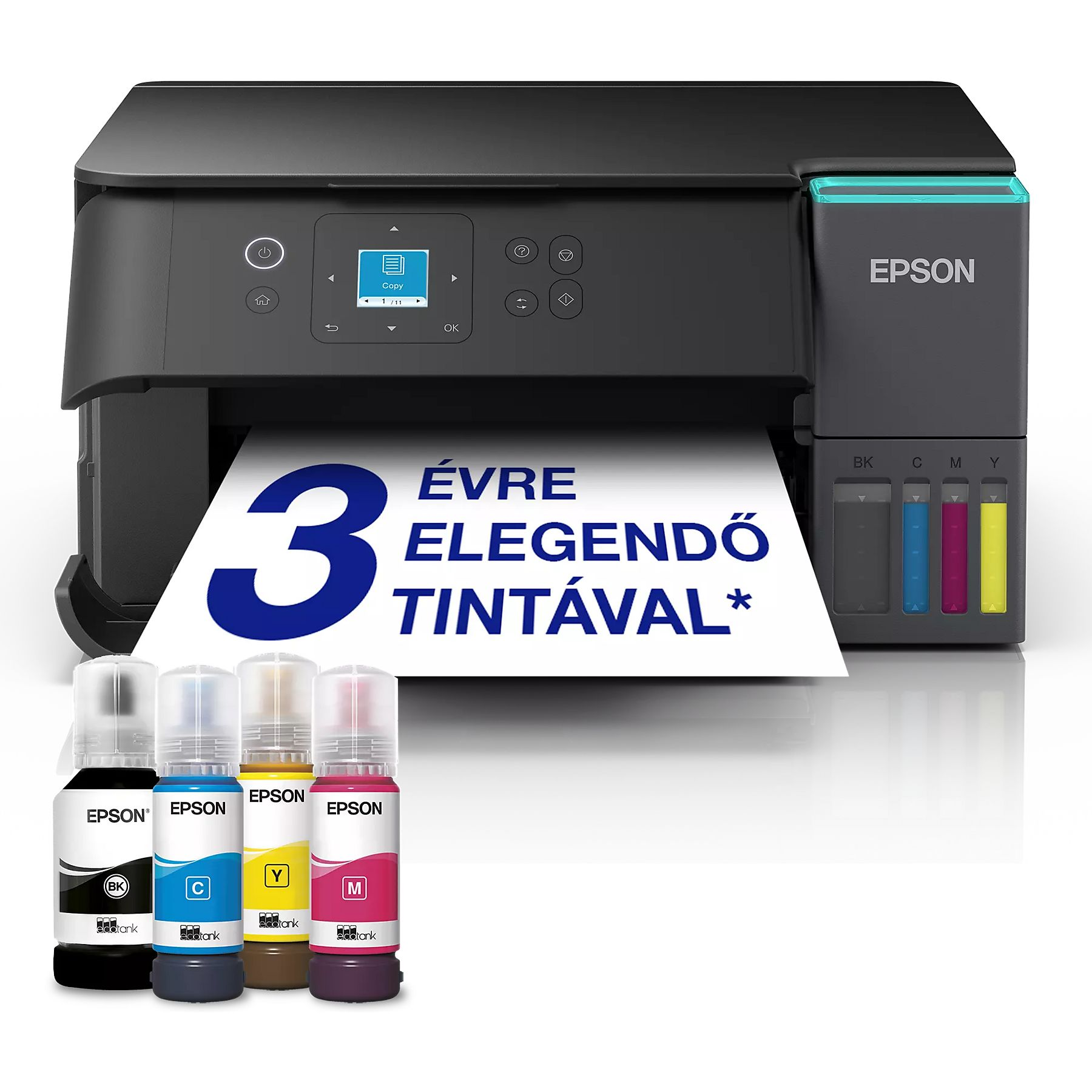 Fő funkciók: A4-es színes tintasugaras nyomtatás • Másolás • Szkennelés • Automatikus kétoldalas nyomtatás (duplex) • Külső EcoTank tintatartály-rendszer • Vezeték nélküli (Wi-Fi) és USB csatlakozás • Mobilnyomtatás Epson Smart Panel alkalmazással