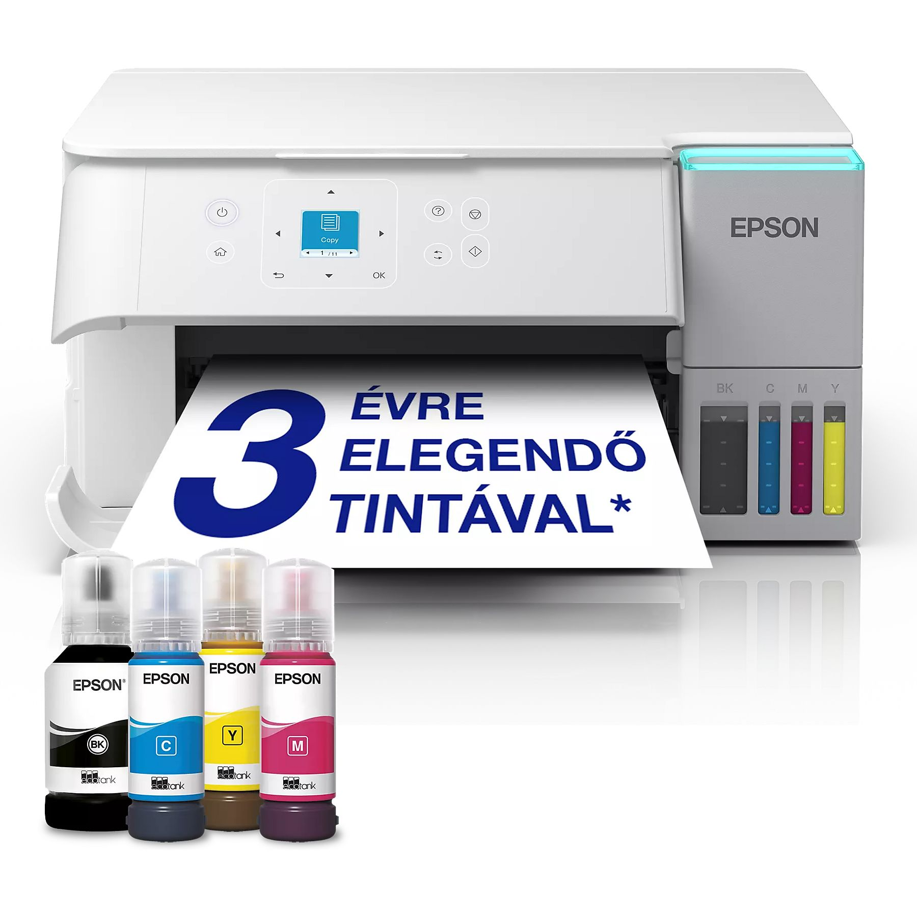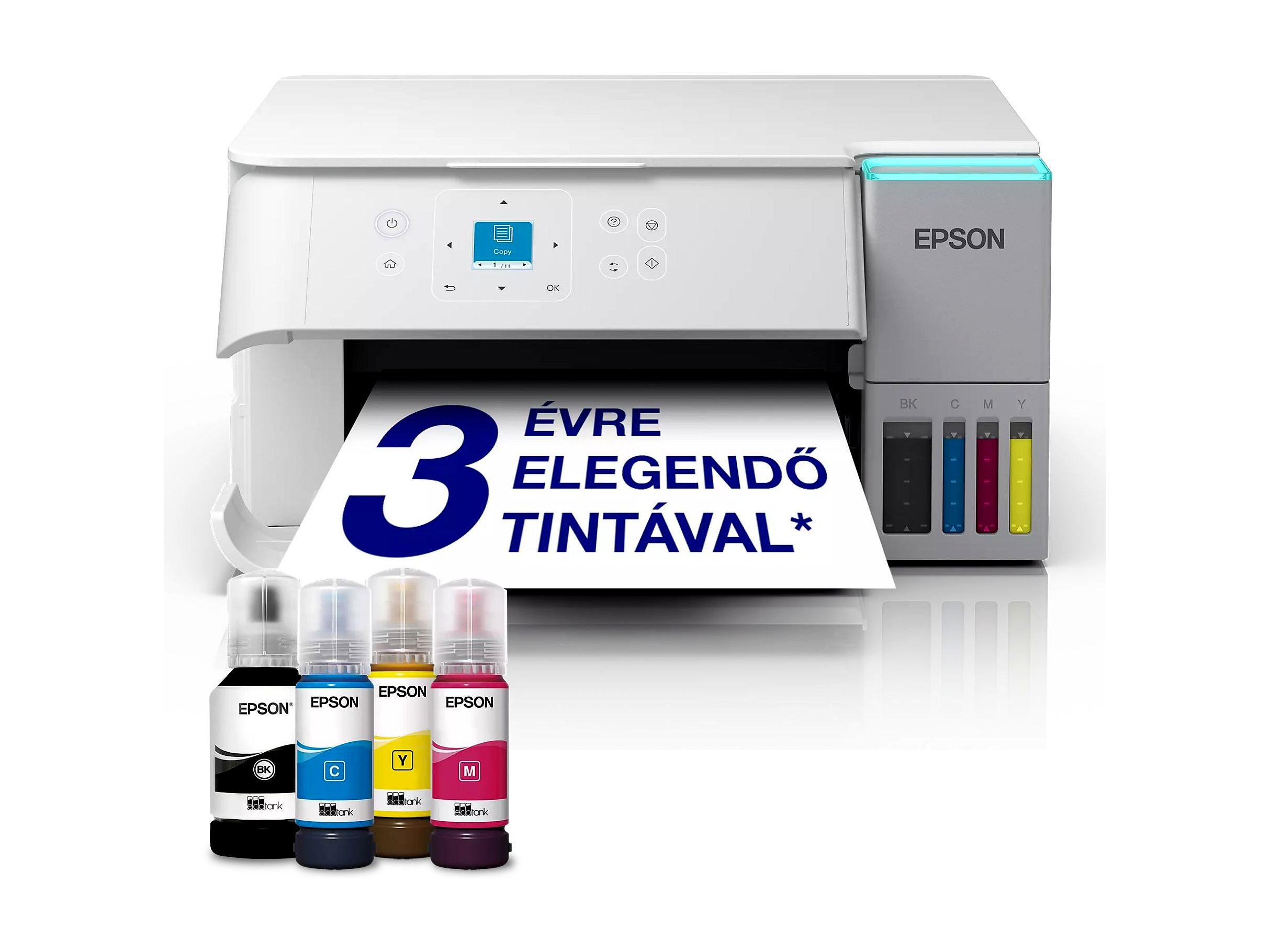• A tintatartályos rendszerek legnagyobb előnye, hogy a költség/oldal érték lényegesen alacsonyabb, mint hagyományos patronos társaiknál, így nagyobb mennyiségű nyomtatás esetén kifejezetten gazdaságosak.