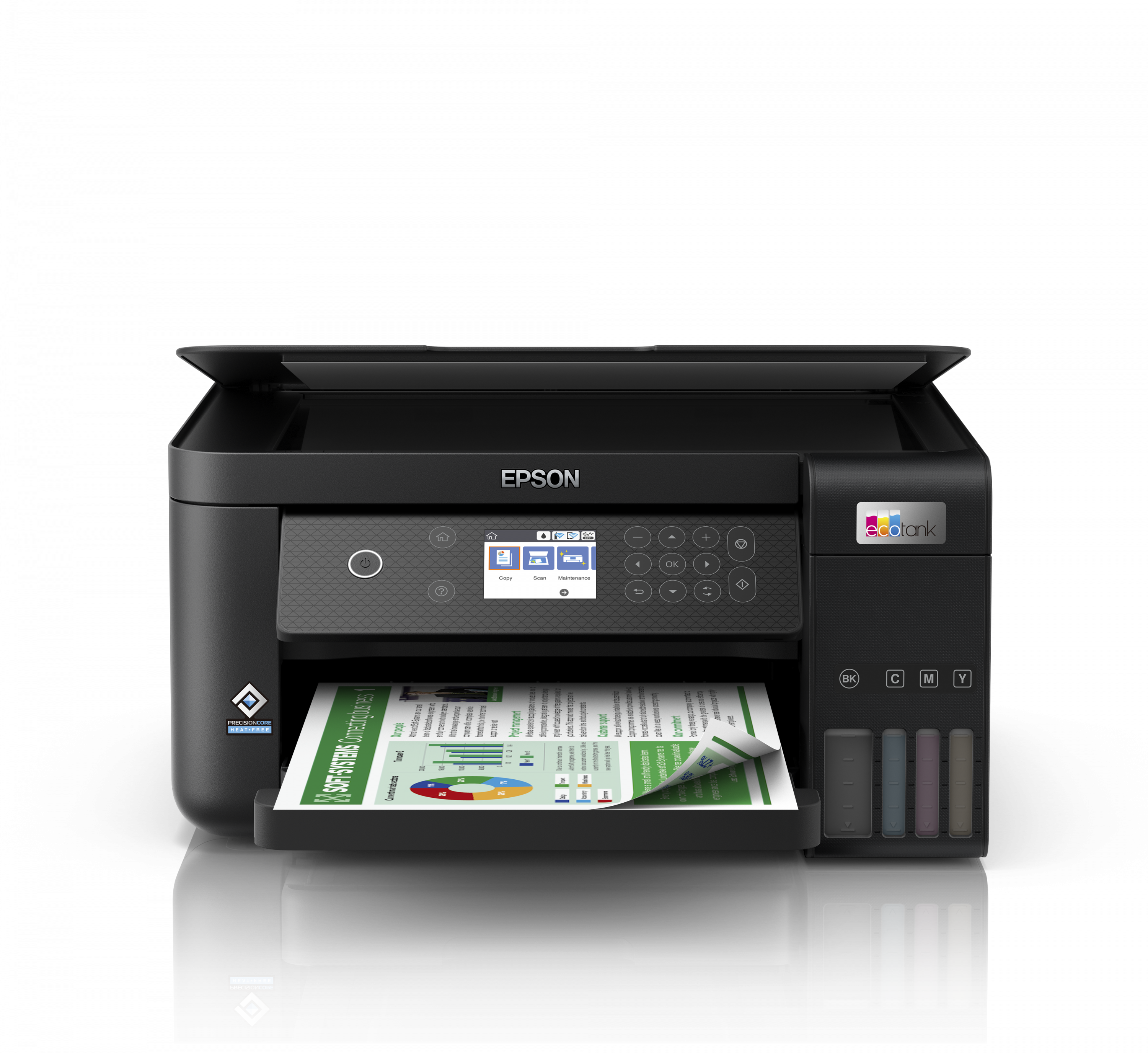 Ez az EcoTank nyomtató akár 90% -ot takarít meg a nyomtatási költségeken, és akár 3 év tintával is rendelkezik a dobozban. A mellékelt tintával akár 14 000 oldalt nyomtathat fekete színben, és 5200 színesben, és a cserélhető tintapalack -készlet akár 66 patronnyi tintával egyenértékű.