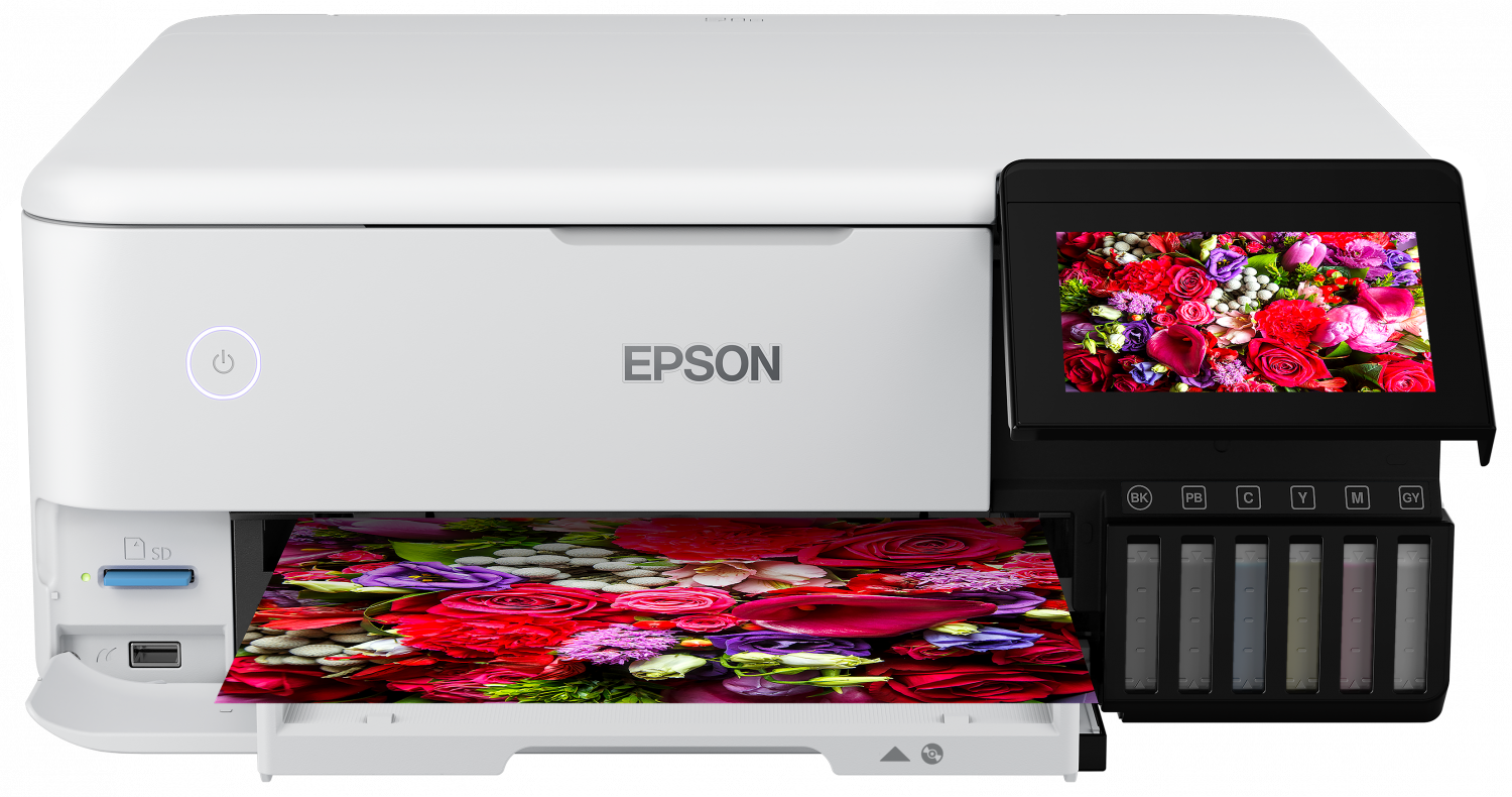 Az Epson Claria ET Premium tinták az új szürke tintának köszönhetően kiváló minőségű, tartós, akár A4-es méretű fotókat, valamint kiváló fekete-fehér nyomatokat biztosítanak. A fekete pigment tinta ideális a szövegek normál papírra történő, kiváló minőségű nyomtatásához.