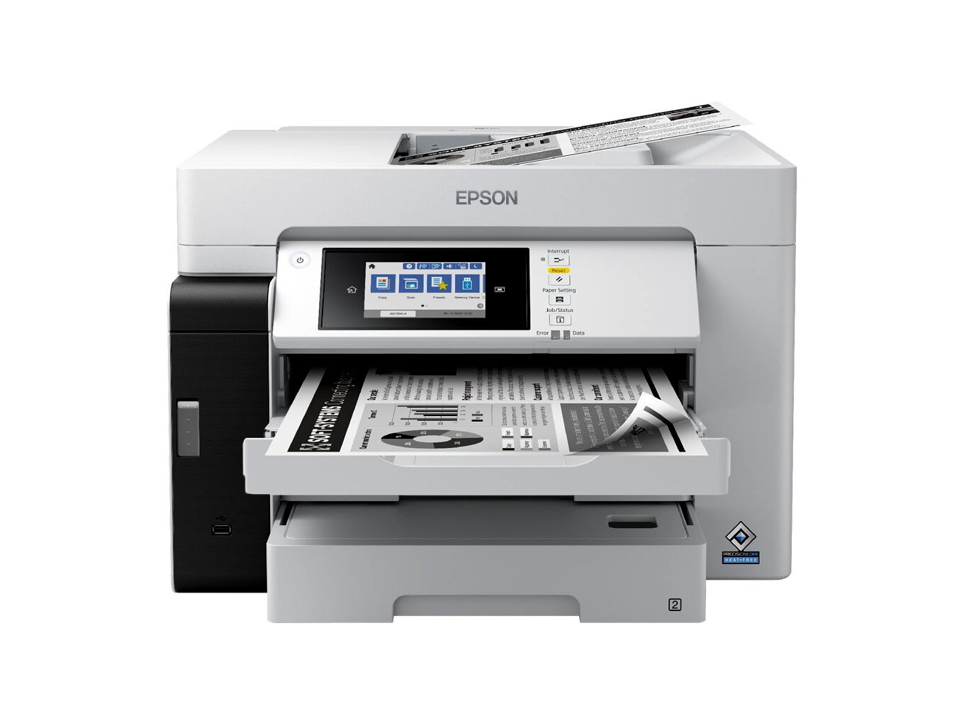 Az utántöltés minimalizálásával az EcoTank több ezer oldalt nyomtat utántöltés nélkül. A két papírtálca 500 lapos kapacitást kínál. Nincs kézi lapadagolás a tágas 50 lapos hátsó papíradagolóval és az automata lapadagolóval.Egyszerűen használható és megbízható