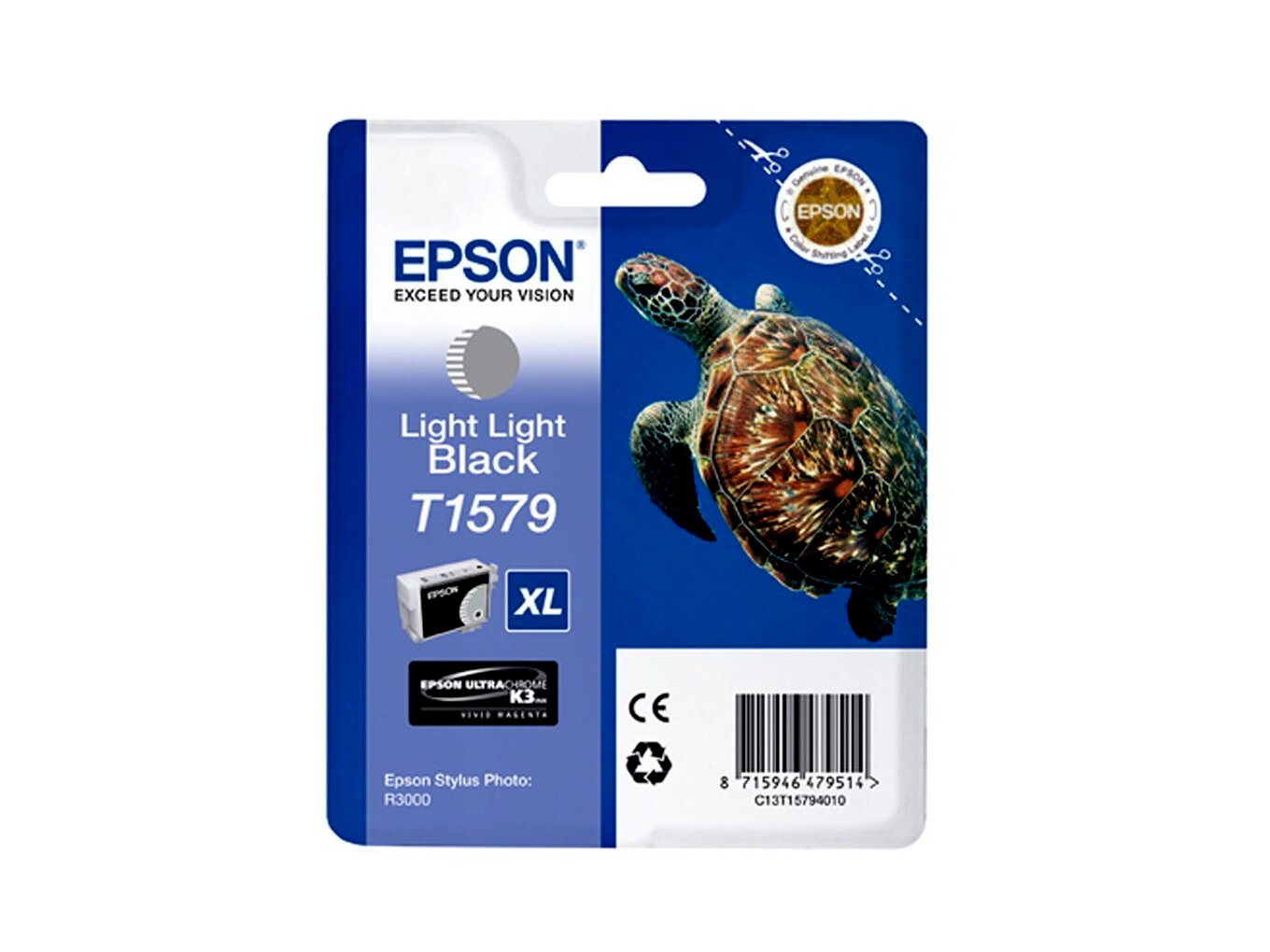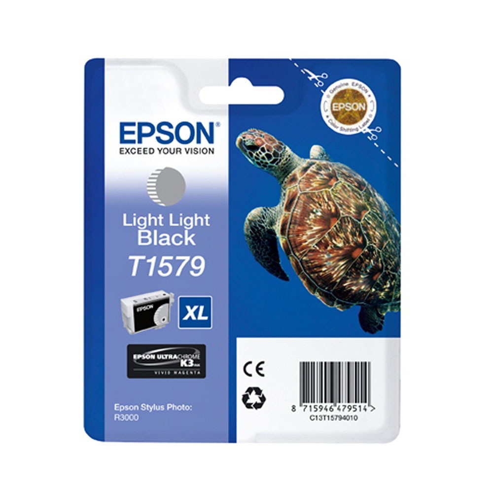 Az eredeti Epson T1579 világos, világos fekete tintapatron optimális nyomtatási minőséget biztosít a monokróm nyomatoknál. Ez az eredeti Epson T1579 tintapatron UltraChrome K3 tintát tartalmaz, és egy egyedülálló, háromszintű fekete tintatechnológia része, amelyet kiállítási minőségű fekete-fehér nyomatok készítésére terveztek. Ideális fotónyomtatáshoz, az Epson C13T15794010 tinta jelentősen csökkenti a fényességkülönbségeket, hogy a fotónyomatok könnyebbek legyenek a szemnek. A metamerizmus és a bronzosodás kiküszöbölésével ez a világos világos fekete Epson T1579 tinta fotóminőségű kimenetet biztosít. Az Epson T1579 tinta hozzáadása javítja a szürke egyensúlyt, és kiemeli a középtónusokat vagy a kiemelt részleteket a nyomatokon. A 25,9 ml becsült kapacitással ez a hosszú élettartamú Epson T1579 patron kiváló kiegészítője az Epson UltraChrome tintakészletének.