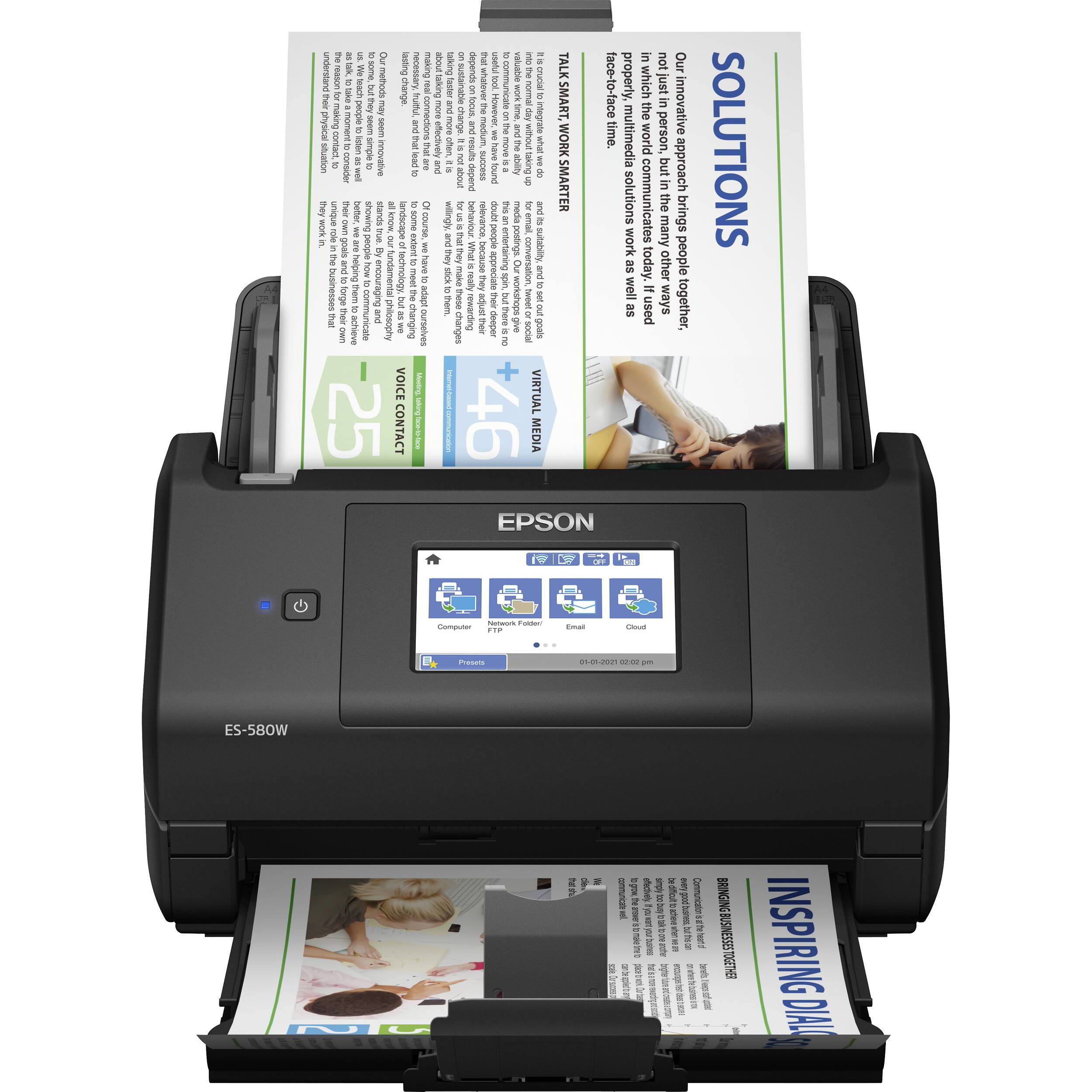 Tartsa kézben vállalkozását ezzel a nagy sebességű, A4-es méretű, kétoldalas automata szkennerrel, amely automatikus lapadagolóval könnyíti meg a munkát. A nagyméretű, 10,9 centiméteres képernyő és a Wi-Fi funkció használatával közvetlenül a kívánt helyre mentheti a dokumentumokat. Dolgozzon gyorsan és okosan a testre szabható előbeállítások segítségével.