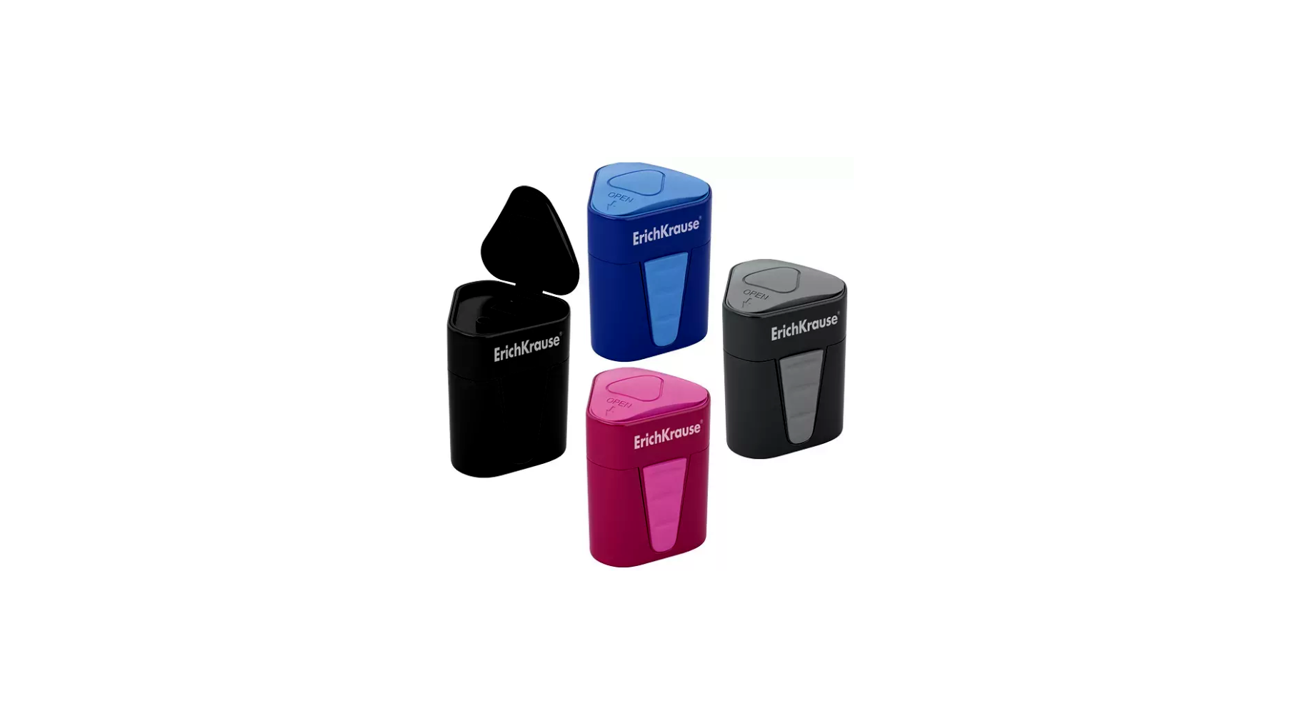 Éles pengekialakítás | Háromszög alakú fogantyú | Tartós műanyag anyag | Zárható fedő | Többféle színváltozat | Egylyukú kialakítás | 8 mm átmérőjű ceruzákhoz alkalmas