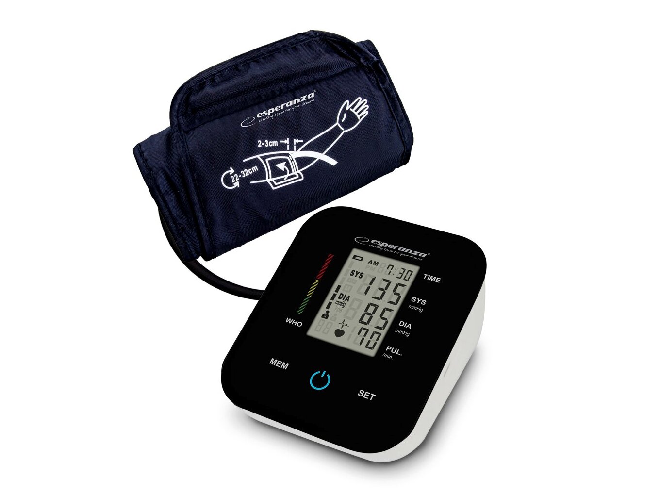 A precíz, megbízható és könnyen kezelhető Esperanza LA LENA vérnyomásmérő tökéletes választás mindazok számára, akik otthonuk kényelmében szeretnék figyelemmel kísérni vérnyomásukat.