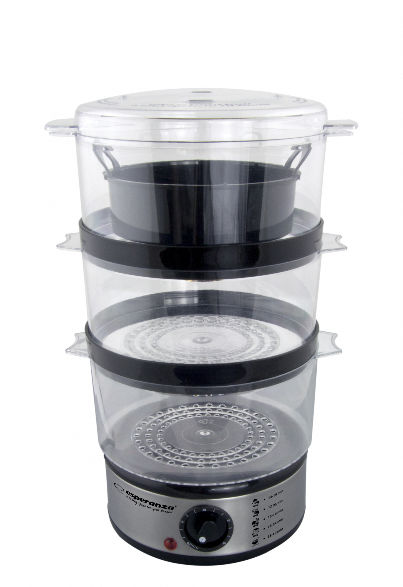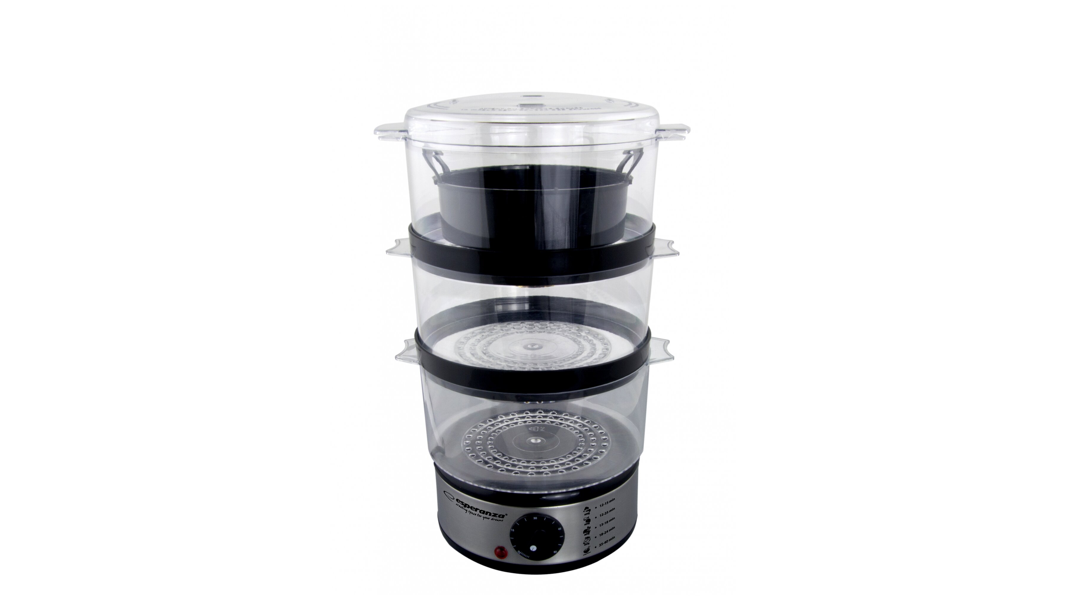 Az Esperanza Volcano 400 wattos teljesítménye biztosítja a hatékony és egyenletes párolást. Három rozsdamentes acél kosarával összesen 7,5 literes kapacitással rendelkezik, így bőséges helyet kínál az összetevők elhelyezésére. Ez a gőzpároló különösen ideális nagyobb családi étkezésekhez vagy akár diétás étrendekhez.