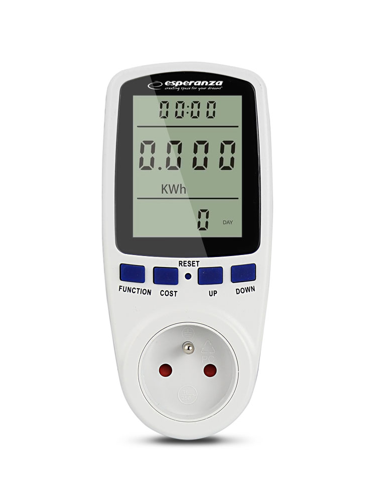 A multifunkcionális Esperanza ORBIT áramfogyasztásmérővel precízen nyomon követheted különböző elektromos eszközeid fogyasztását. Az eszköz képes mérni a feszültséget, az áramerősséget, a teljesítményt és az energiafogyasztást, továbbá kiszámítja a csatlakoztatott berendezések által elfogyasztott energia költségét is.