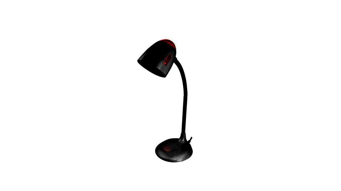 Asztali lámpa nagy, stabil talppal. A rugalmas kar lehetővé teszi a lámpa tetszőleges szögben történő beállítását. A lámpa E27-es foglalatú, akár 12W teljesítményű LED izzókkal szerelhető fel.
