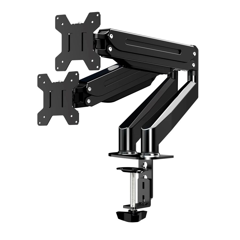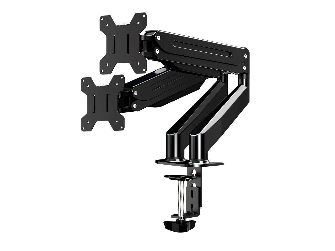 Az Esperanza Mache ERW020 asztali tartó kar két darab 17”-27” méretű LCD/TV monitor számára készült. Ez a robusztus és stabil fémtartó lehetővé teszi két monitor elhelyezését az asztalodon, így jelentős helyet szabadíthatsz fel, miközben rugalmas beállításokat tesz lehetővé a nézési szög és a magasság tekintetében.