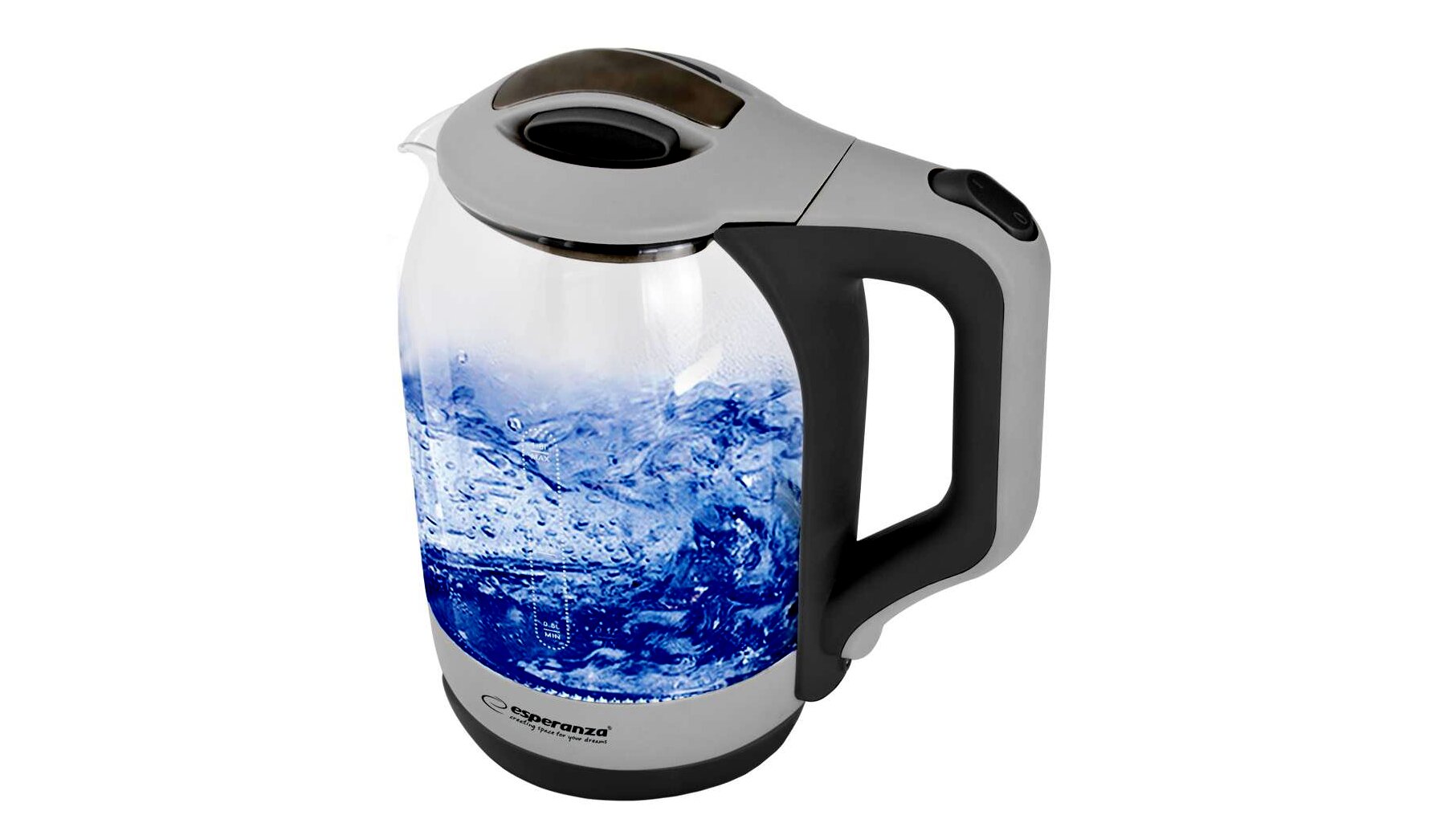 Az egyedülálló, időtlen alak és a forró víz kék fénye beleillik a belső térbe és a konyhába. Kiváló minőségű hőálló üveg beépített rejtett fűtőelemekkel. Egyszerűen helyezze a vízforralót az alapzatra, és vegye el, ha a víz felforrt. Kényelmes és biztonságos fedélnyitás a fedélen található gomb megnyomásával.