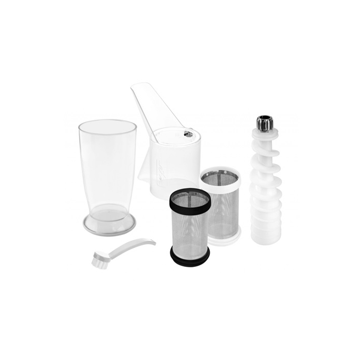 - Két rozsdamentes, színkódolt szita (1 mm-es durva lyukakkal, 0,6 mm-es finom lyukakkal)