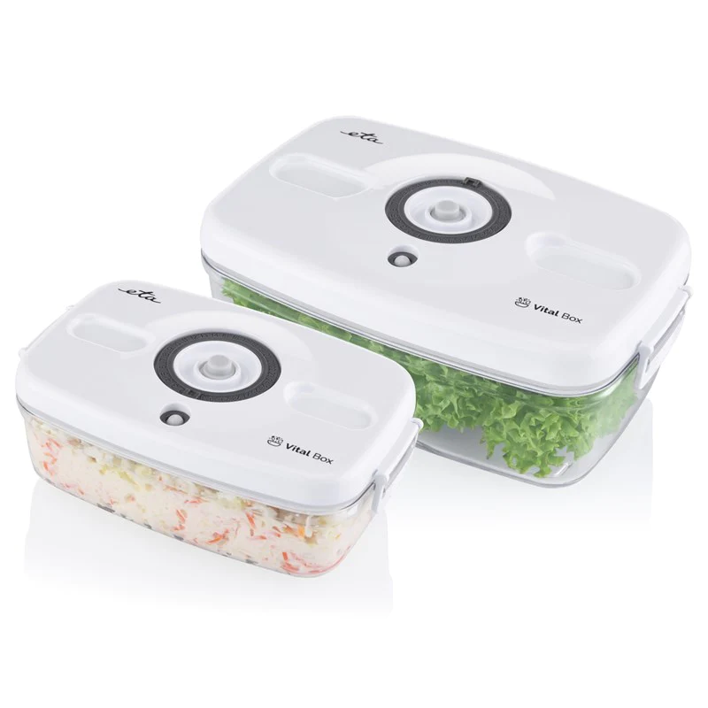Hosszabbítsa meg élelmiszereinek eltarthatóságát, és kerülje el a felesleges pazarlást! Az ETA 076290040 vákuumos ételtároló készlet hatékony módja az élelmiszerek otthoni tárolásának, amely akár 5-ször tovább friss marad, megőrizve természetes aromáját és ízét.