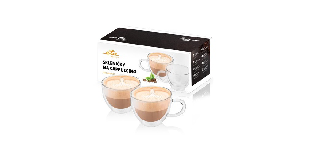 Élvezd a kedvenc cappuccinódat ezekben a kiváló minőségű poharakban! Az ETA 518092010 cappuccino pohárkészlet elegáns és praktikus megoldást kínál minden kávékedvelő számára. A készlet 2 különleges poharat tartalmaz, amelyek tökéletesek a finom kávéitalok szervírozásához.