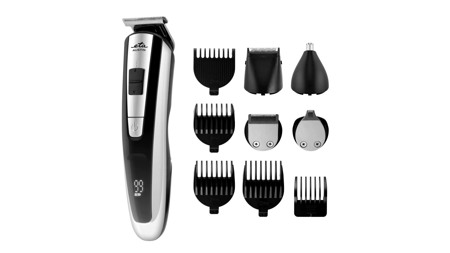 Az erős és többfunkciós ETA Austin hajvágóval könnyedén formázhatja a haját, a szakállát és a rakoncátlan szőrzetet az orrban és a fülben. A sima arcbőr kedvelőiről sem feledkeztünk meg.