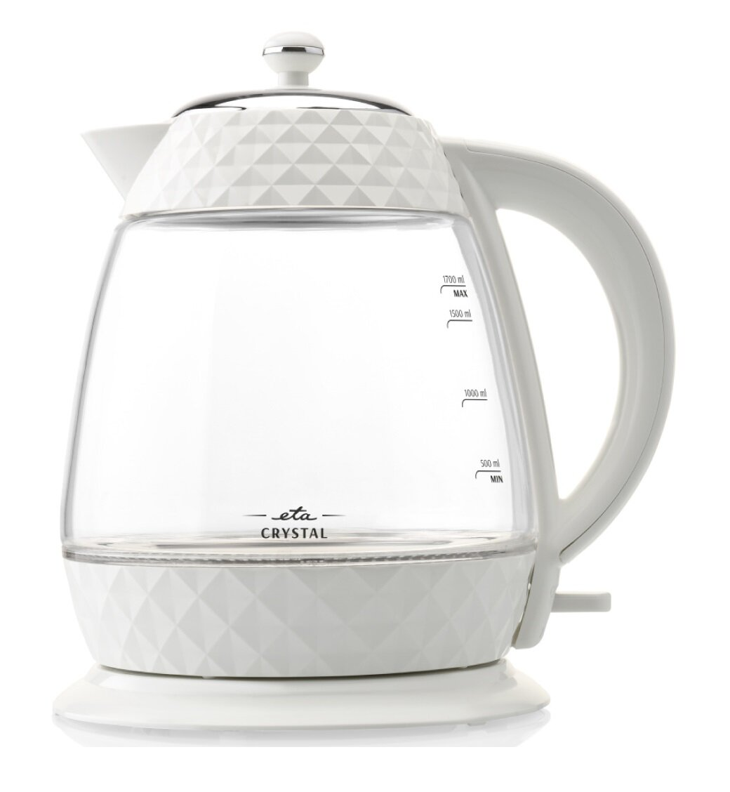 Az ETA Crystal üveg vízforraló egy igazi dizájndarab, amely minden modern konyha dísze. Elegáns üvegkialakítása és belső világítása magával ragadja a tekintetet, és a víz forralása igazi látványossággá válik.