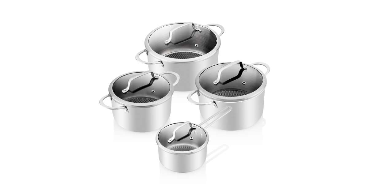 - Üvegfedél rozsdamentes acél szalaggal és speciális szellőzőnyílással, amely biztosítja a gőz enyhe túlnyomását az edényben a gyors és egészséges főzés érdekében