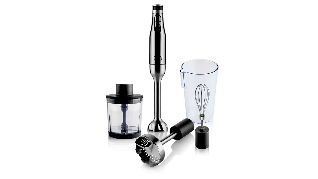 - Mellékelt tartozékok: Habverő, aprító, burgonyapüré tartozék és 600 ml-es munkatartály.
