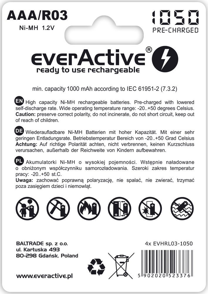 - Minimális kapacitás 1000 mAh - az IEC 61951-2 nemzetközi szabványnak megfelelően