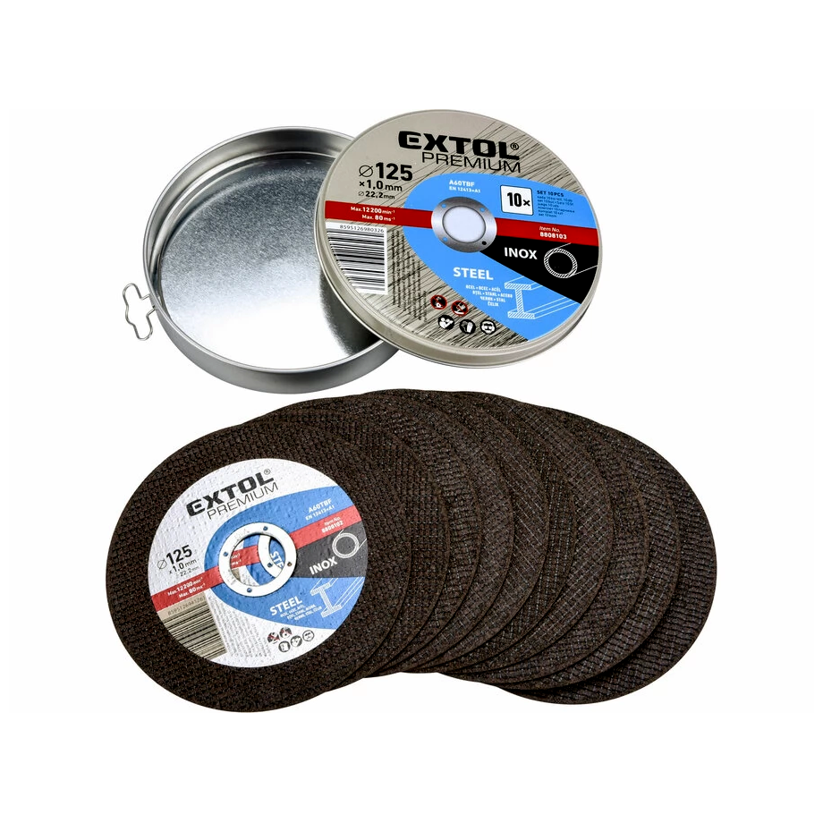Extol Premium 125 x 1 x 22,2mm vágókorong a kék színnel jelölt prémium minőségi vágótárcsa, melyet speciálisan acél és rozsdamentes acél (inox) anyagok vágására terveztek. A termék egy szettben 10 darab vágótárcsát tartalmaz, mindez egy praktikus fémdobozban, amely megkönnyíti a tárolást és szállítást.