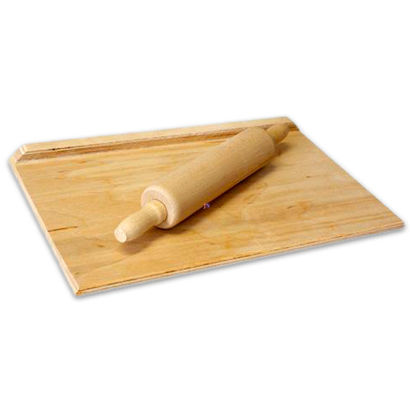 A deszkán a sodrófával ki tudod nyújtani a tésztát.