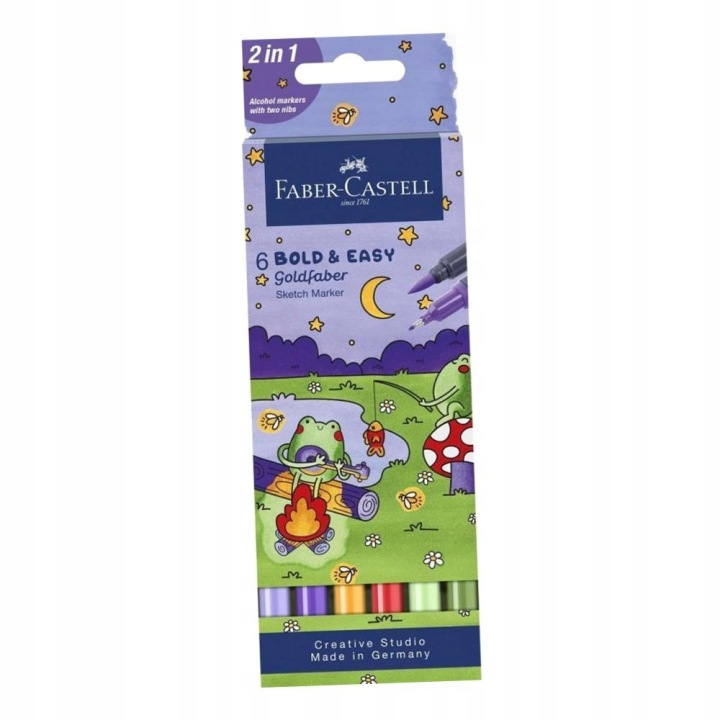 A Goldfaber Sketch kétoldalas filctoll készlet ideális választás mind művészeknek, mind hobbirajzolóknak, akik sokoldalú, megbízható és kényelmesen használható eszközt keresnek. A kétféle hegykialakításnak köszönhetően egyetlen tollal megoldhatók a finom kontúrok, részletgazdag rajzok és a lágy, festményszerű színátmenetek is.