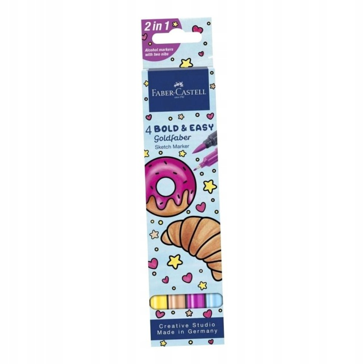 A Goldfaber Sketch kétoldalas filctoll készlet a Bold & Easy II sorozatból ideális választás mindenkinek, aki könnyedén szeretne látványos, színhű és csíkmentes rajzokat, illusztrációkat vagy jegyzeteket készíteni. A sokoldalú kialakításnak és a profik által is kedvelt tulajdonságoknak köszönhetően egyaránt alkalmas művészeknek, diákoknak és hobbirajzolóknak.