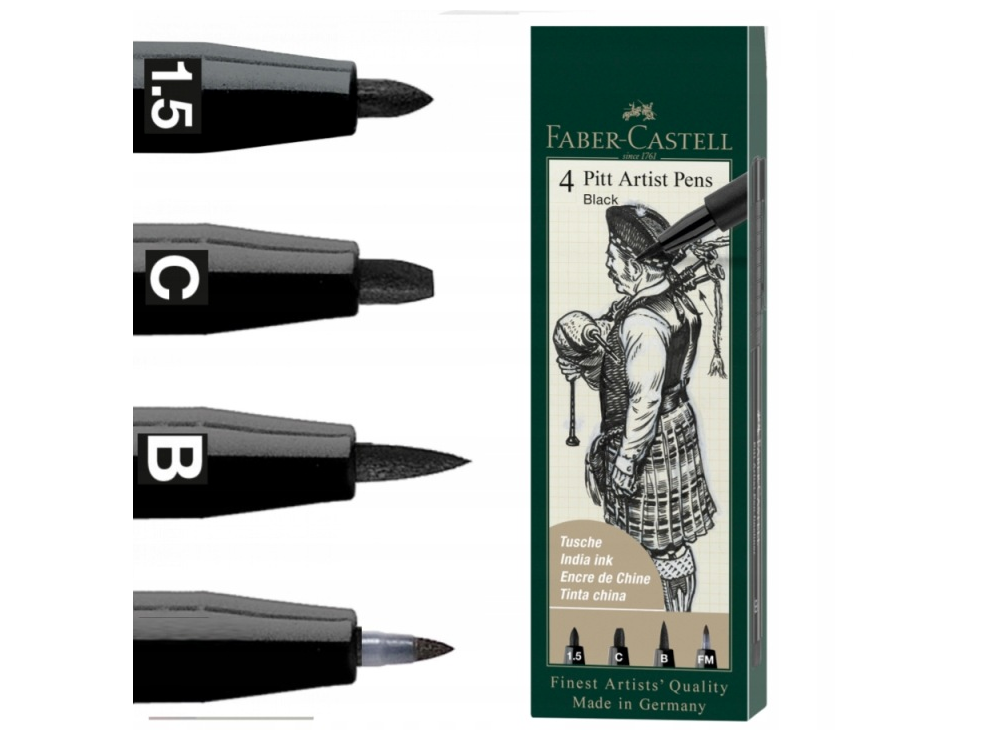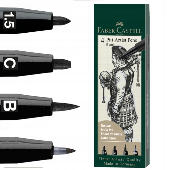 A Faber-Castell a világ egyik legrégebbi és legismertebb írószer- és művészellátó gyártója, amely 1761 óta készít kiváló minőségű ceruzákat, tollakat és művészeti eszközöket. Nevük egyet jelent a megbízhatósággal, a prémium minőséggel és az innovatív fejlesztésekkel. A Pitt Artist sorozatot kifejezetten művészek igényeire szabták, ötvözve a klasszikus tusrajz hagyományát a modern, praktikus filctoll-kialakítással.
