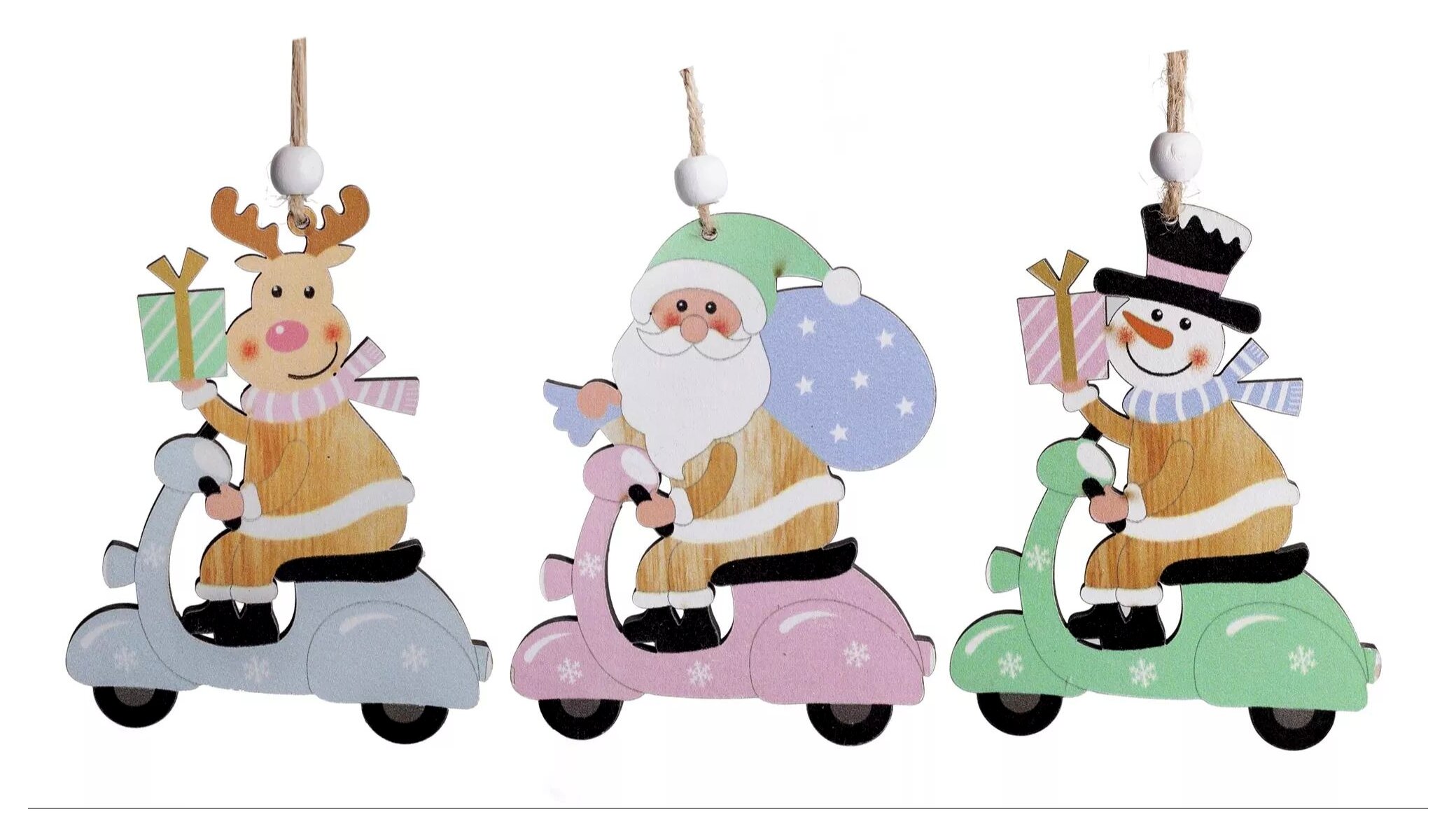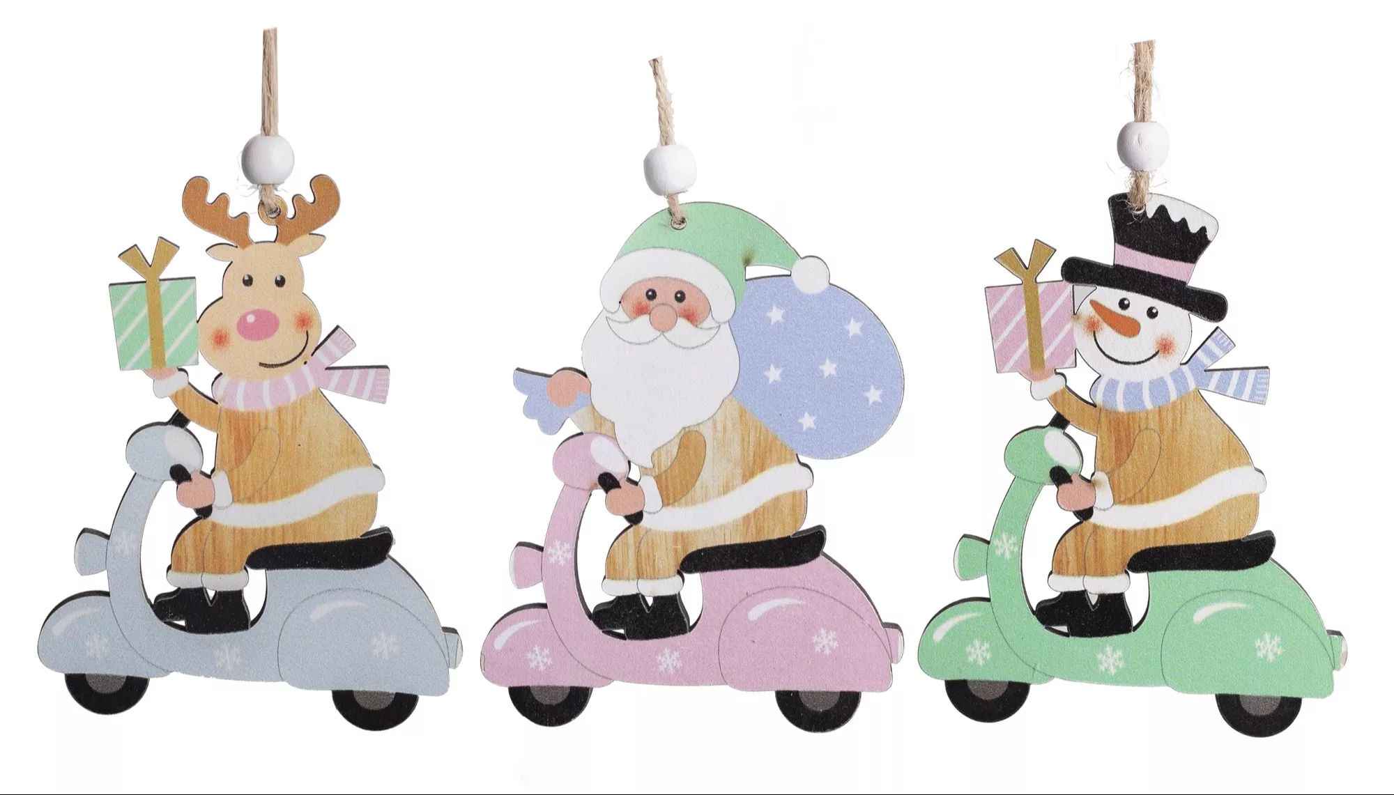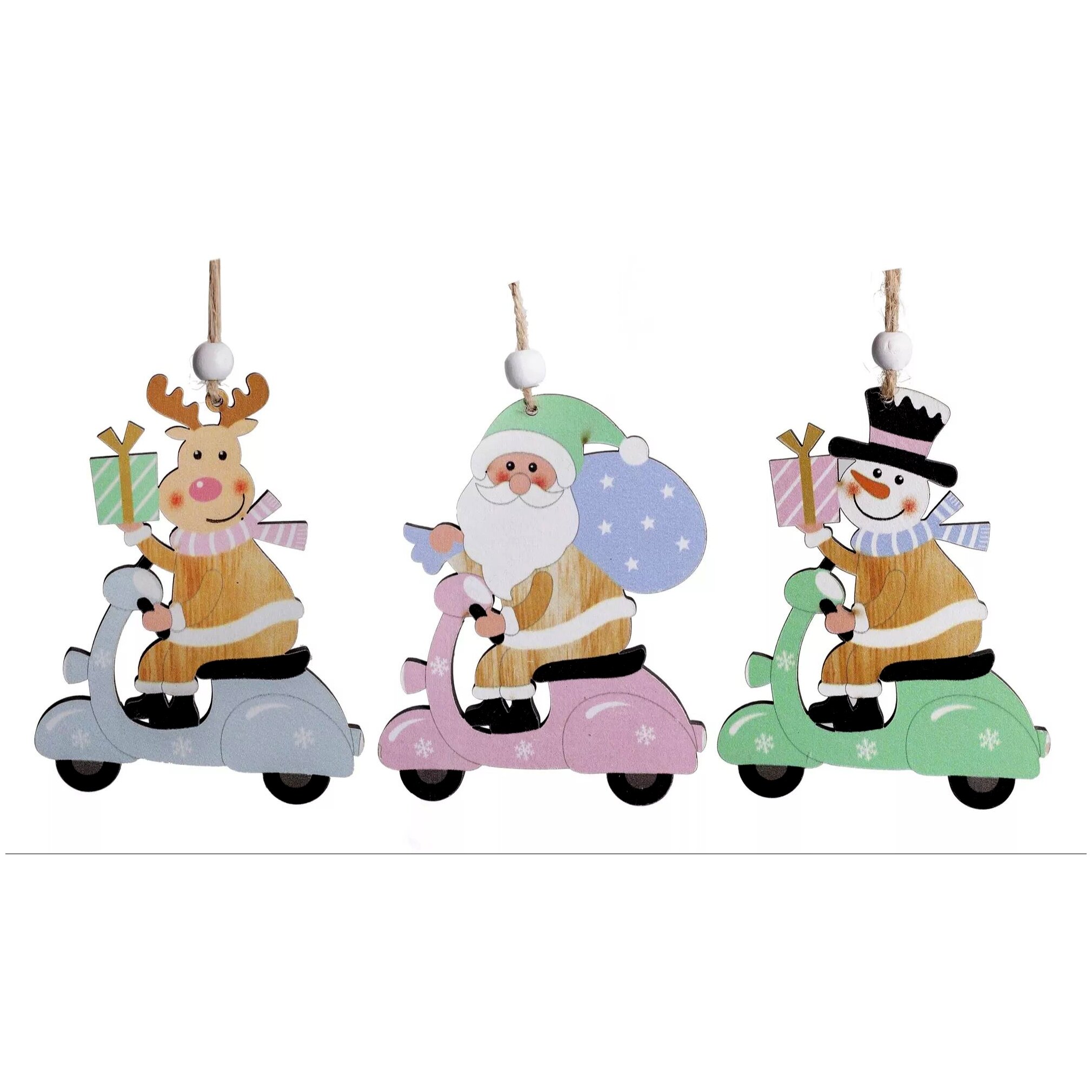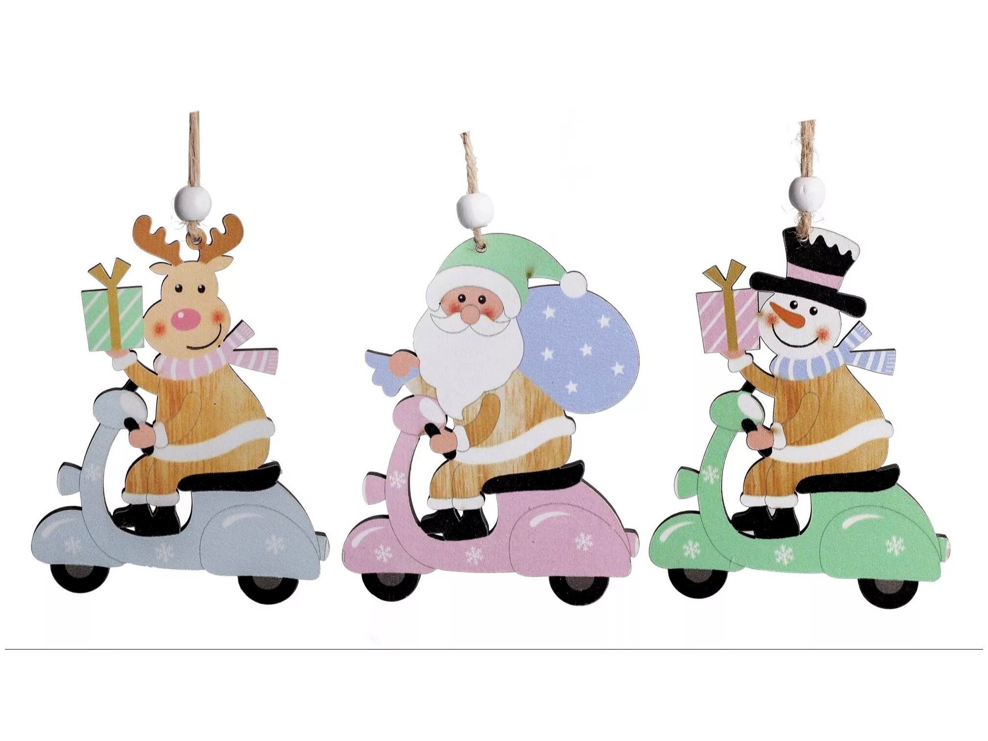 Fából készült motorozó karácsonyi figurák akasztóval - Többféle