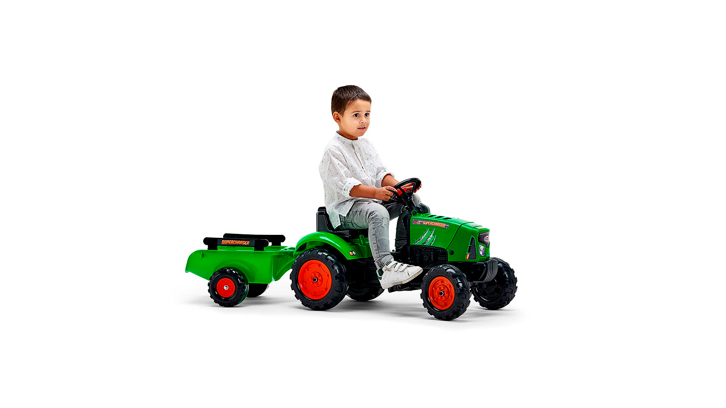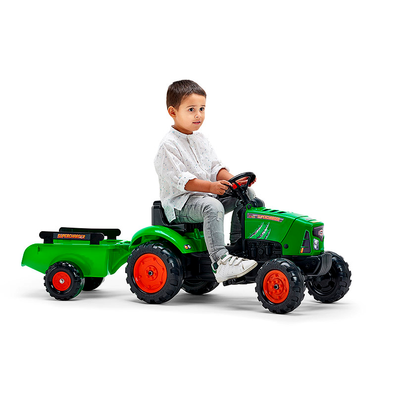 - Zöld Supercharger pedálos traktor kormánykerékkel, dudával és pótkocsival